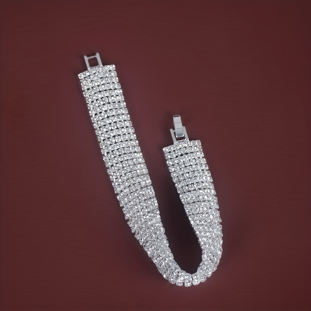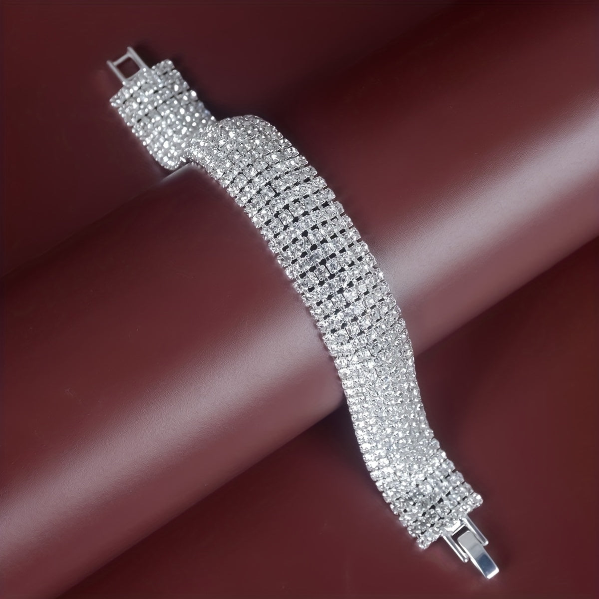 Make a statement with this stunning rhinestone bangle bracelet. The copper material adds a touch of elegance to your look.