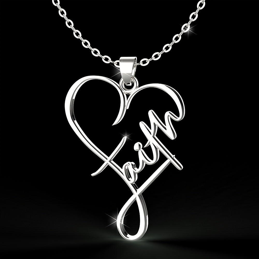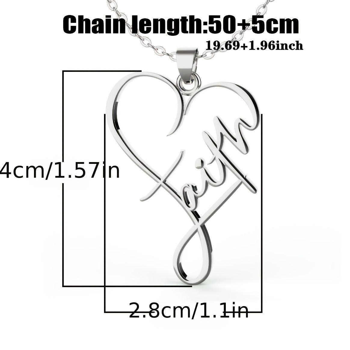 This stainless steel pendant necklace features a heart-shaped design with the word 'Faith' engraved on it, making it a meaningful and stylish accessory for believers.