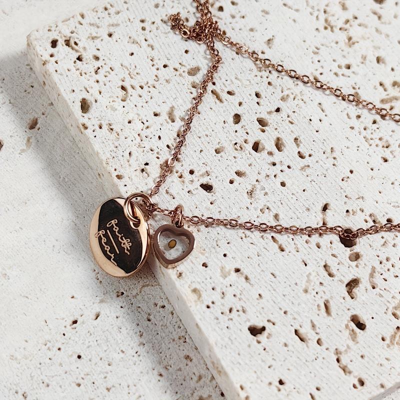 Beautiful necklace inspired by Matthew 17:20, reminding you to choose faith over fear. Elegant design with a heart charm. Perfect accessory for everyday wear or special occasions.