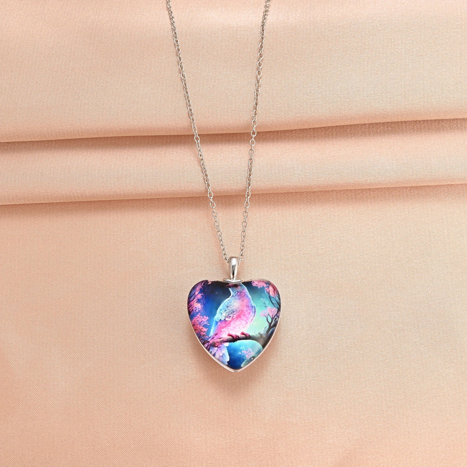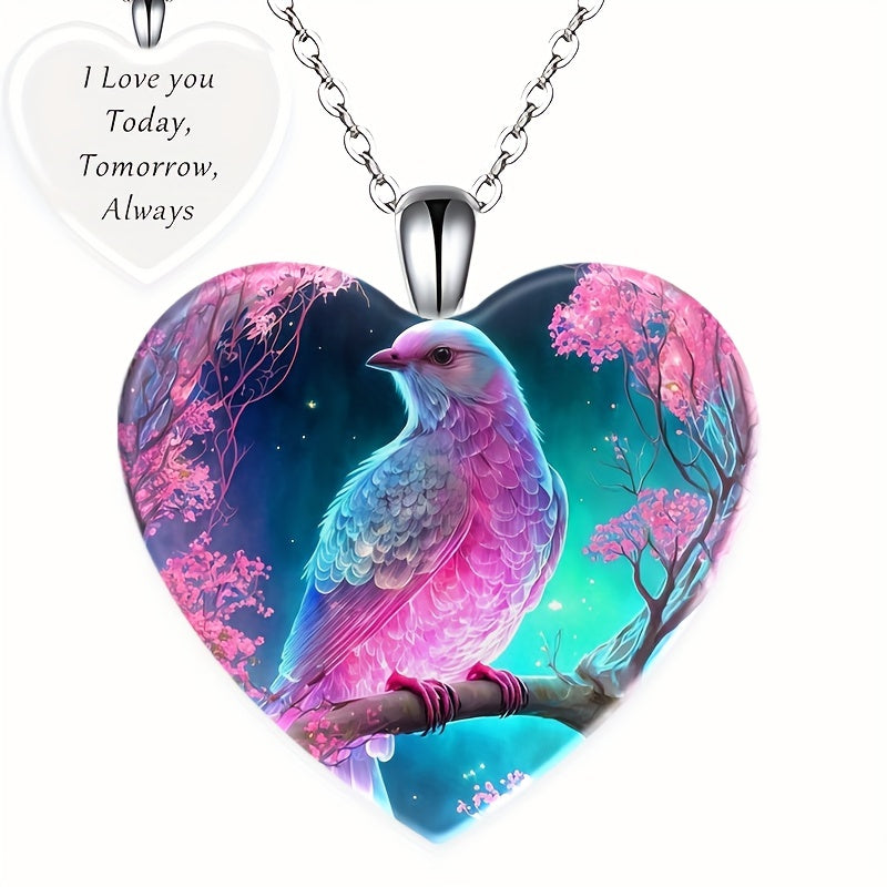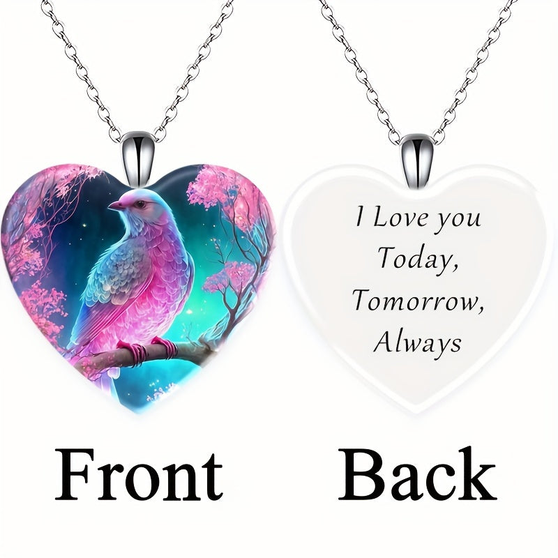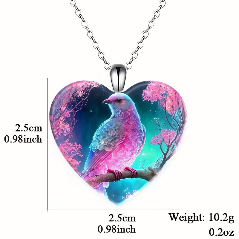 Adorn yourself with this exquisite crystal pendant necklace featuring a fantasy bird pattern on a love heart design. Perfect for Christmas, holiday parties, birthdays, or as a thoughtful gift for someone special.