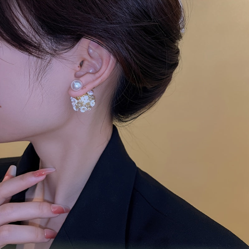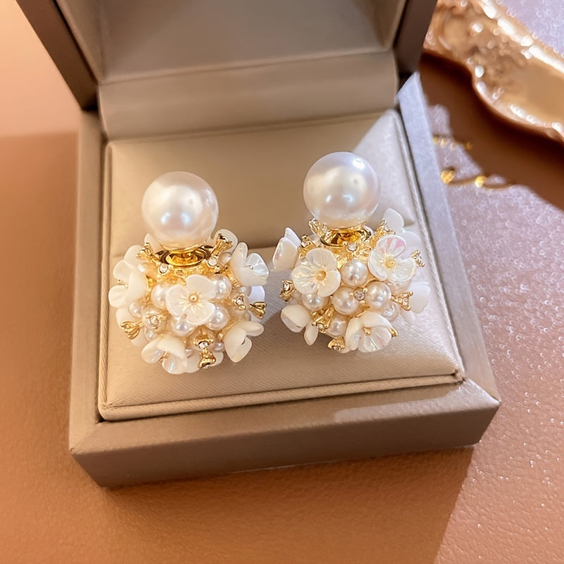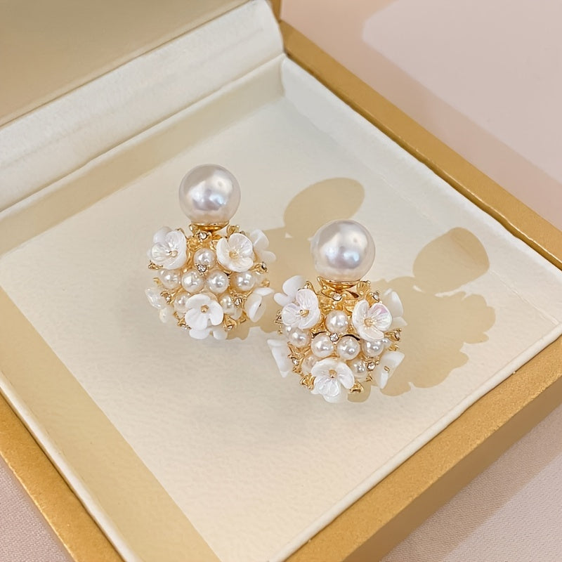 These flower faux pearl ball earrings are a creative and stylish jewelry accessory perfect for women and girls. They add a unique touch to any outfit.