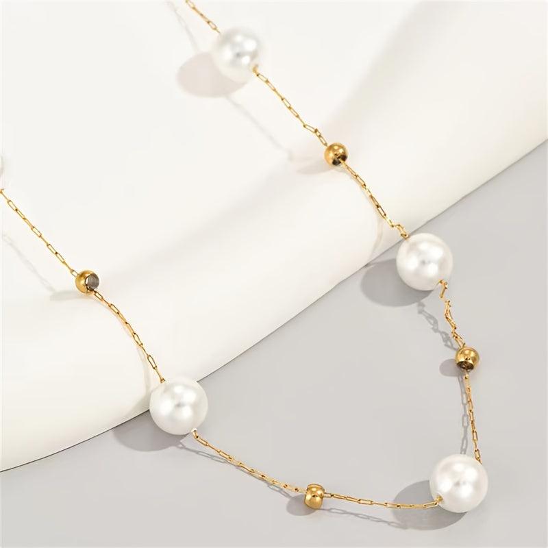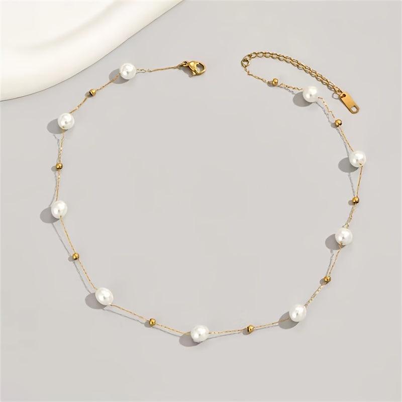 Add a touch of elegance to your outfits with this faux pearl bead necklace. The adjustable thin chain and delicate style make it perfect for everyday wear.