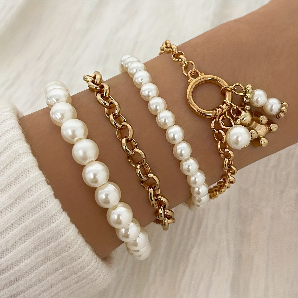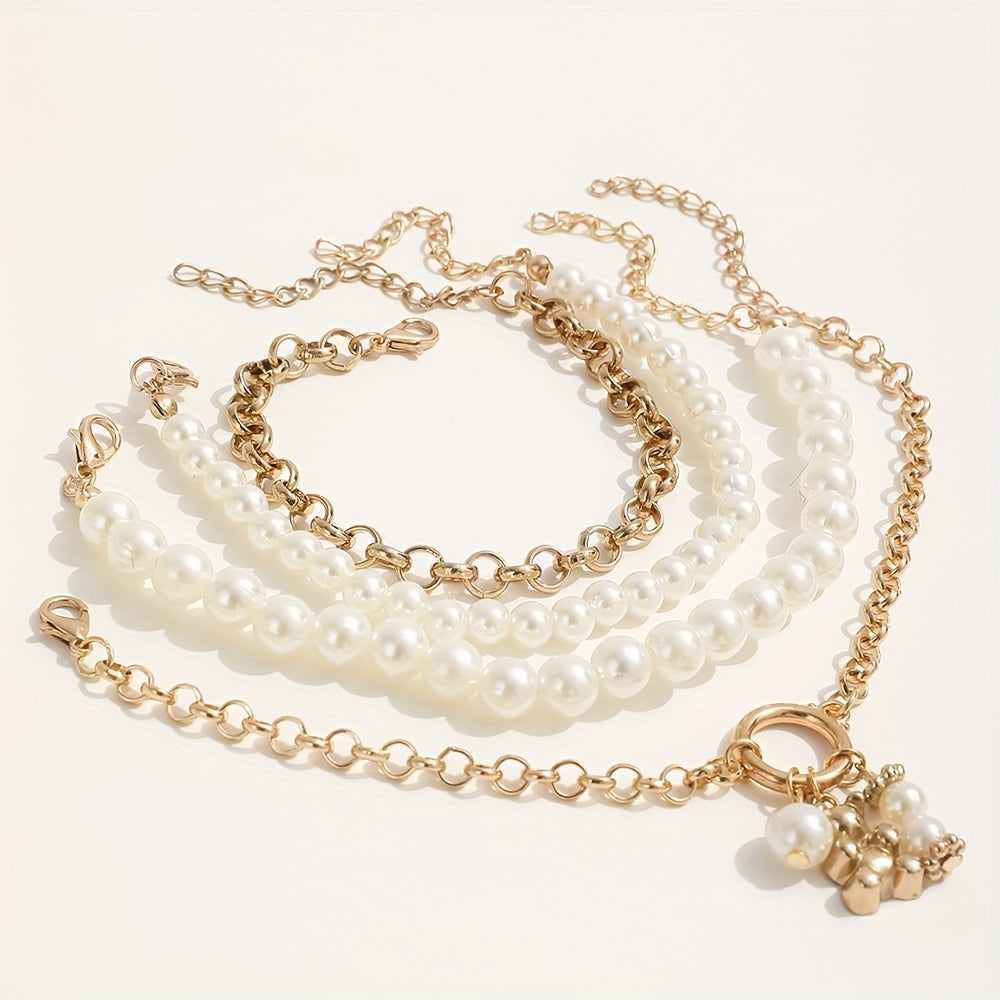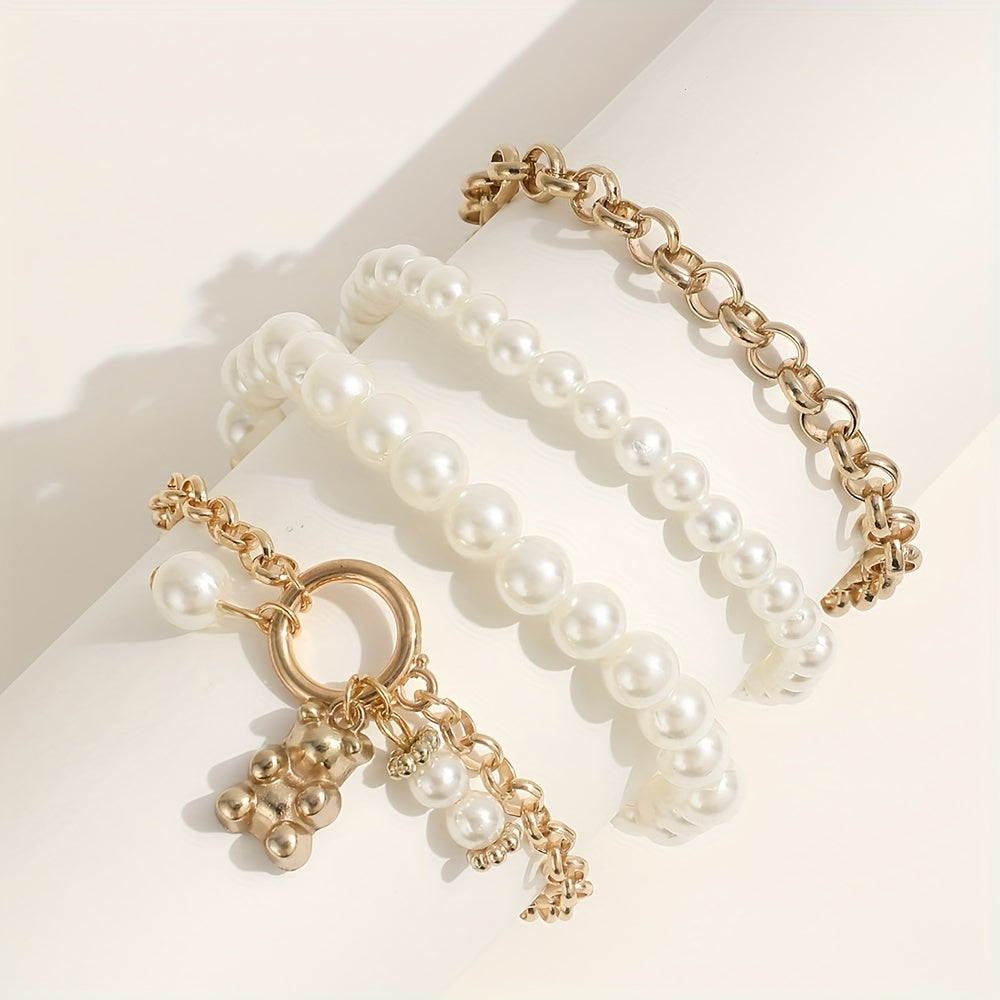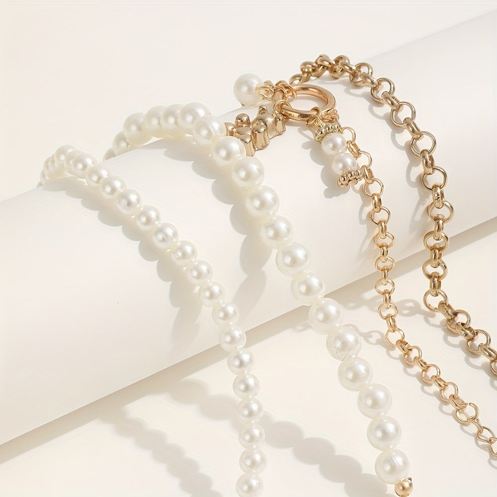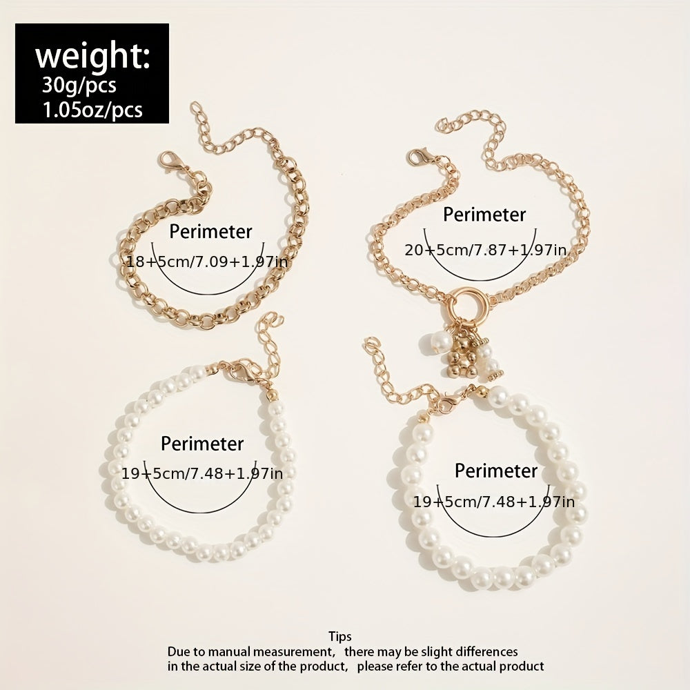 Elevate your style with this stackable faux pearl bracelet set. Perfect for women & girls, this hand jewelry set adds a touch of elegance to any outfit.