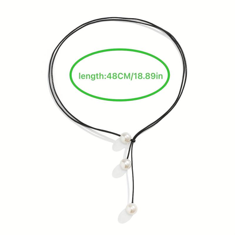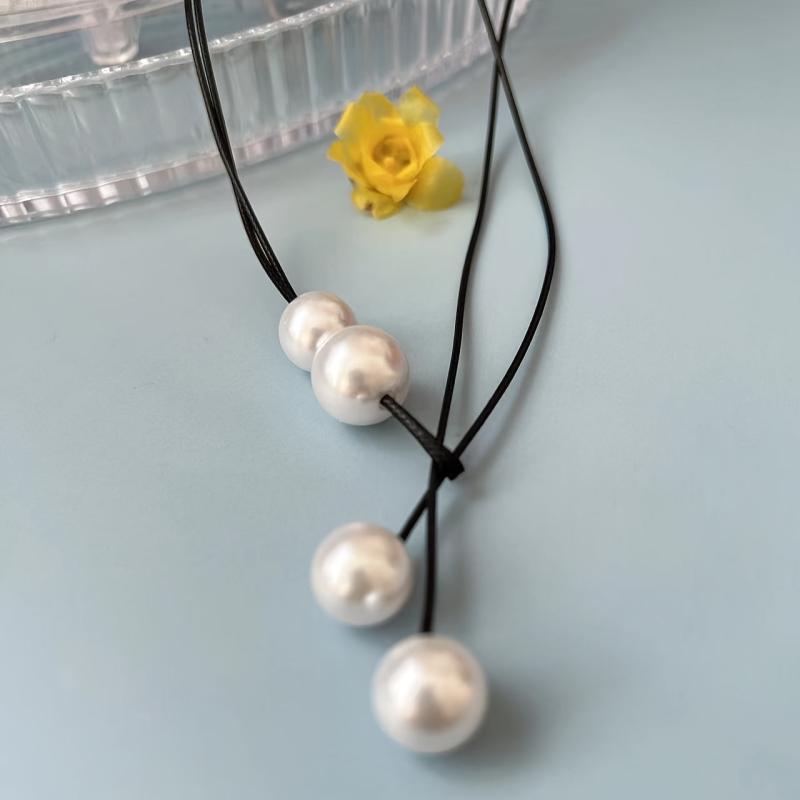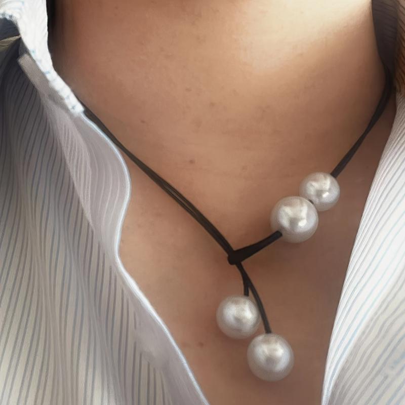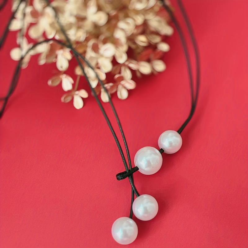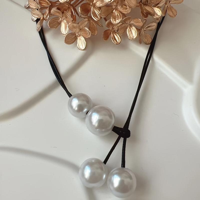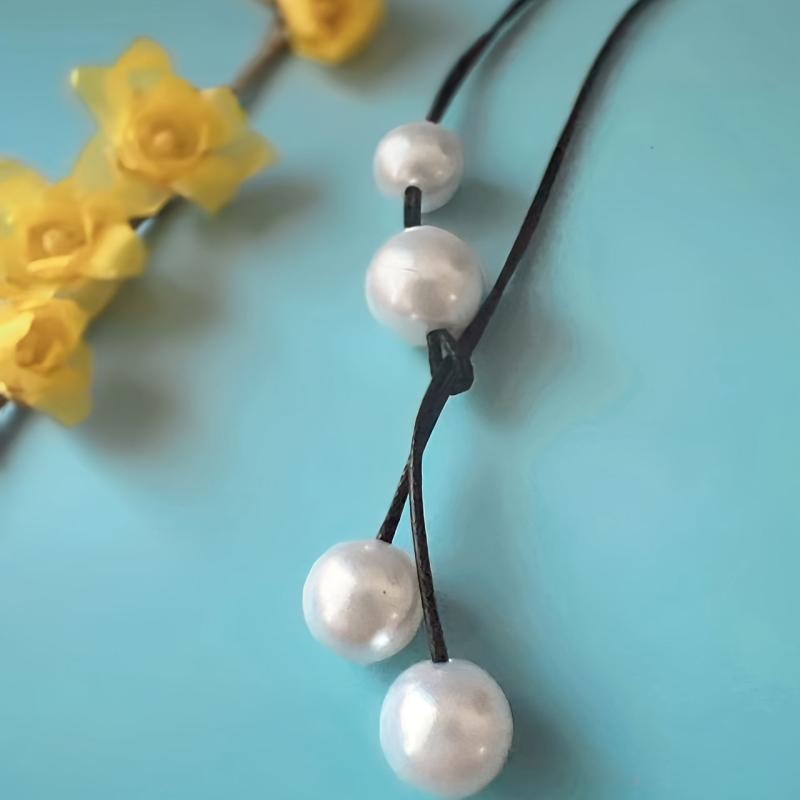 Elegant necklace with four faux pearl beads on waxed cord. Adds a tender touch to your collarbone.
