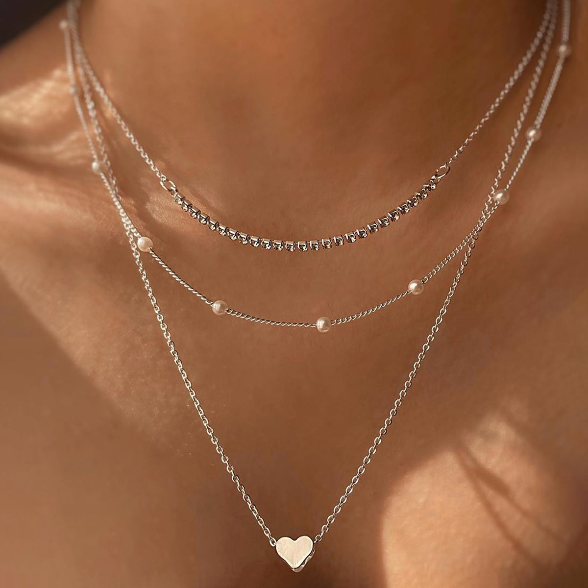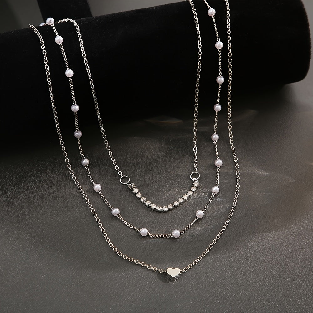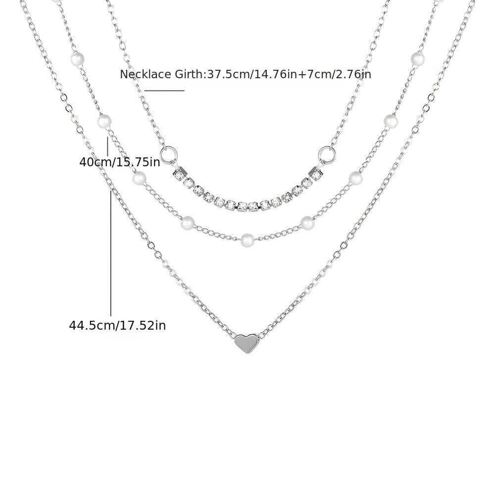 Faux Pearl Heart Pendant Layered Necklace for Girls
