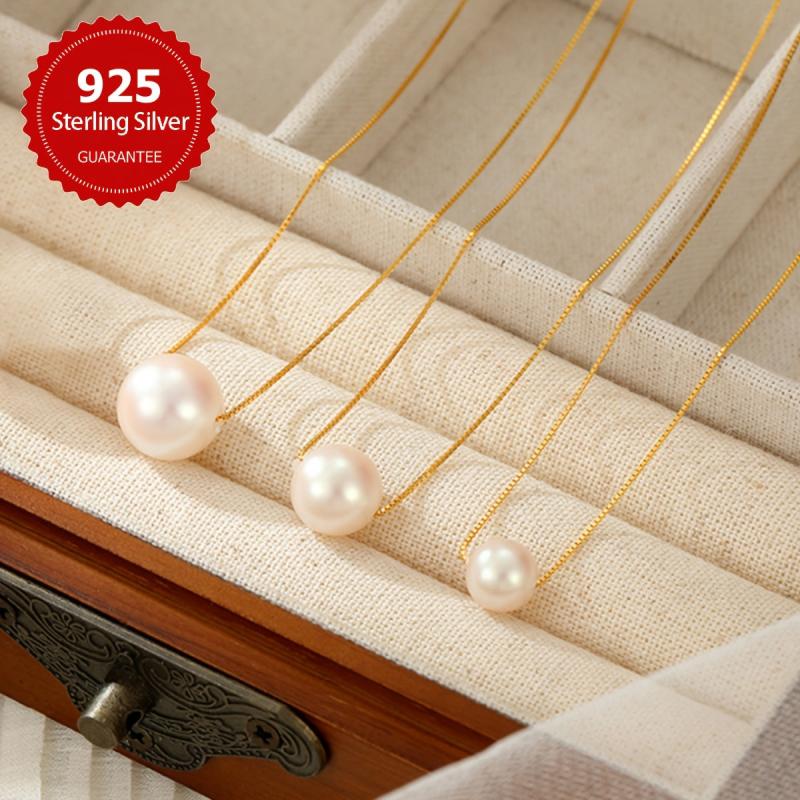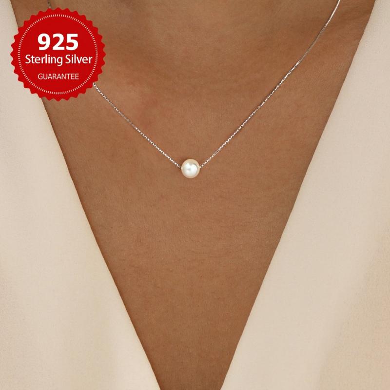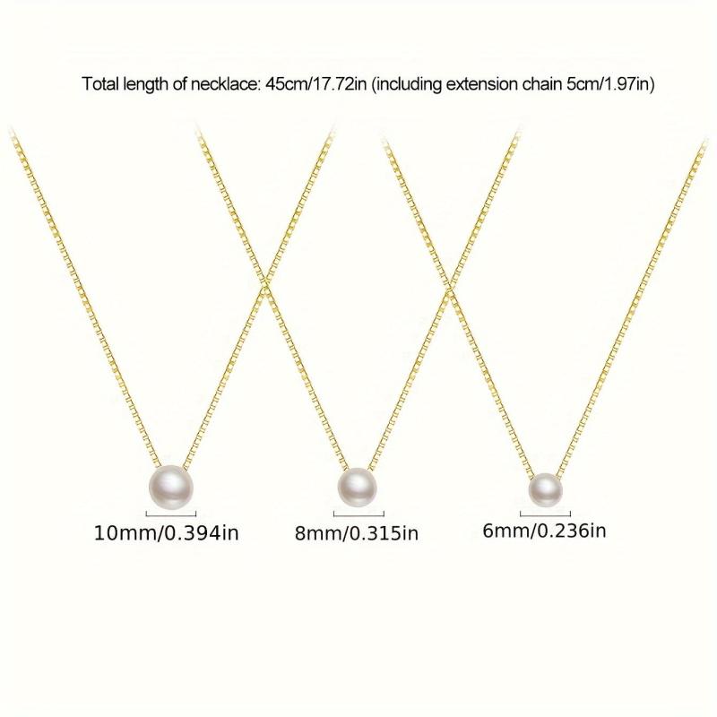 This elegant necklace features a 6-10mm faux pearl pendant on a hypoallergenic golden tone chain. It makes a perfect gift for women.