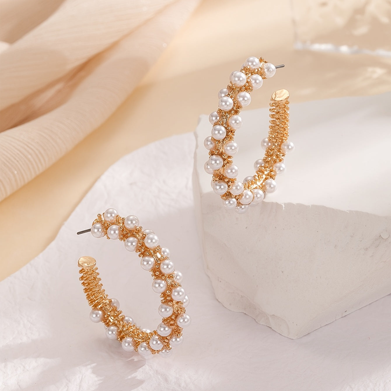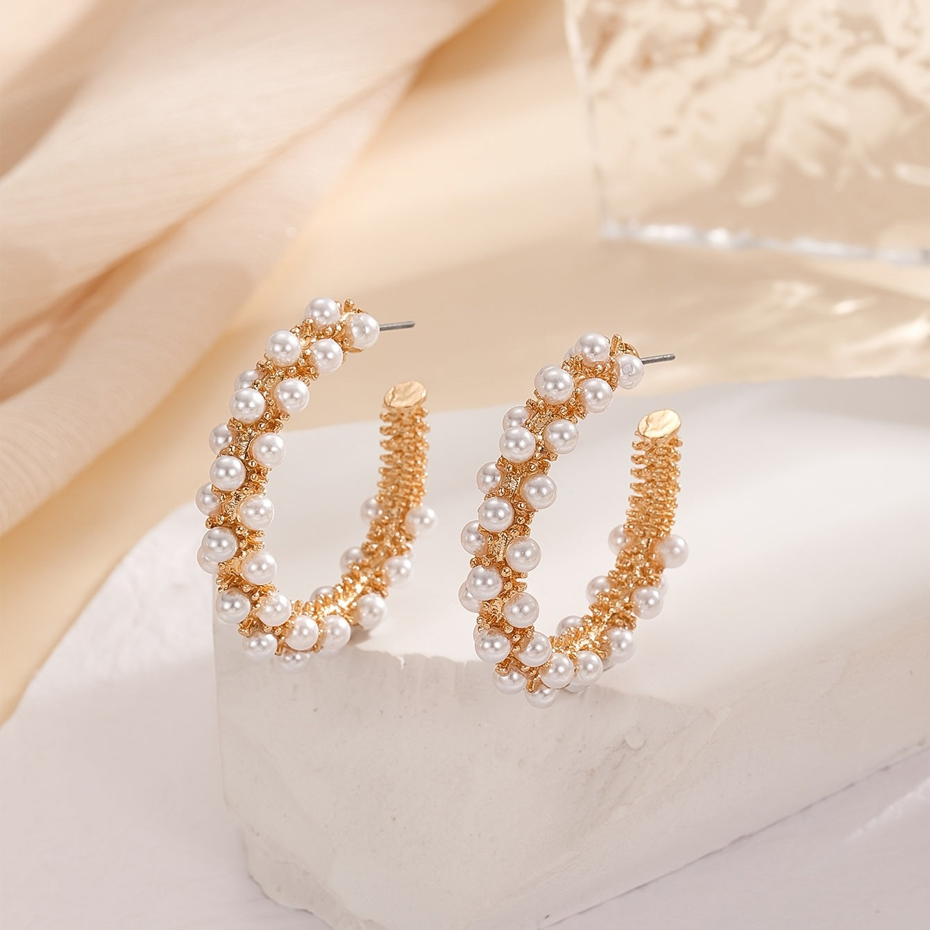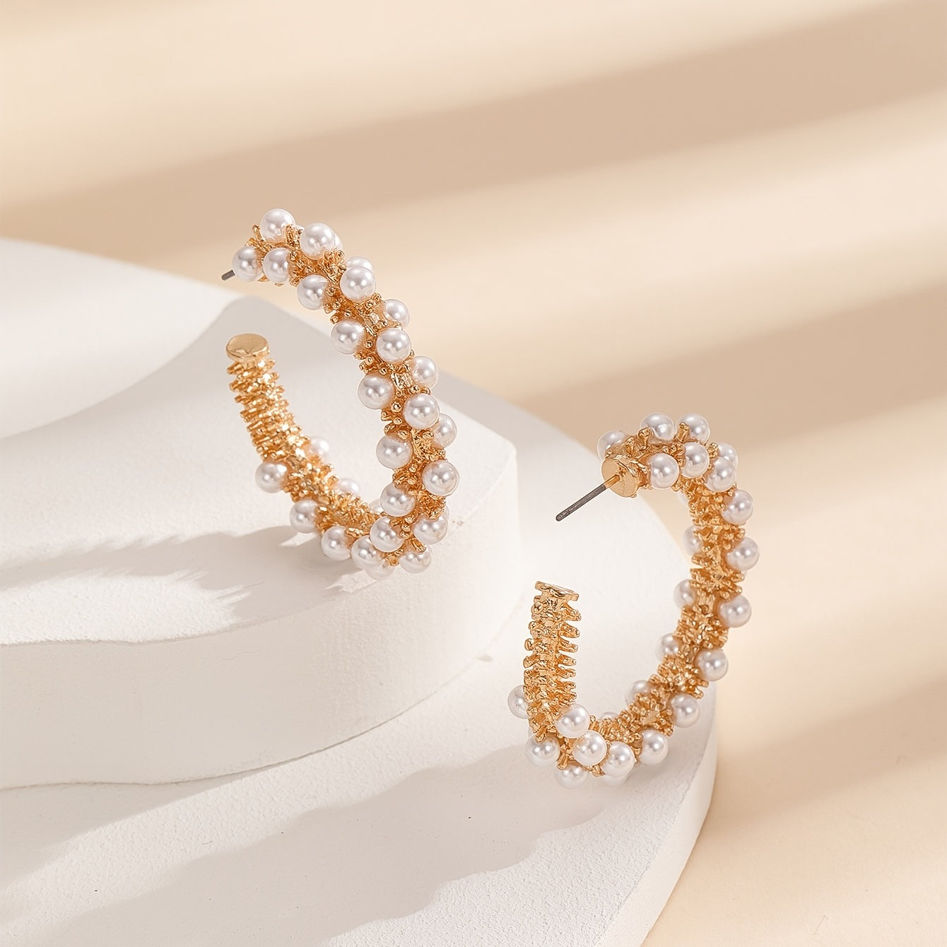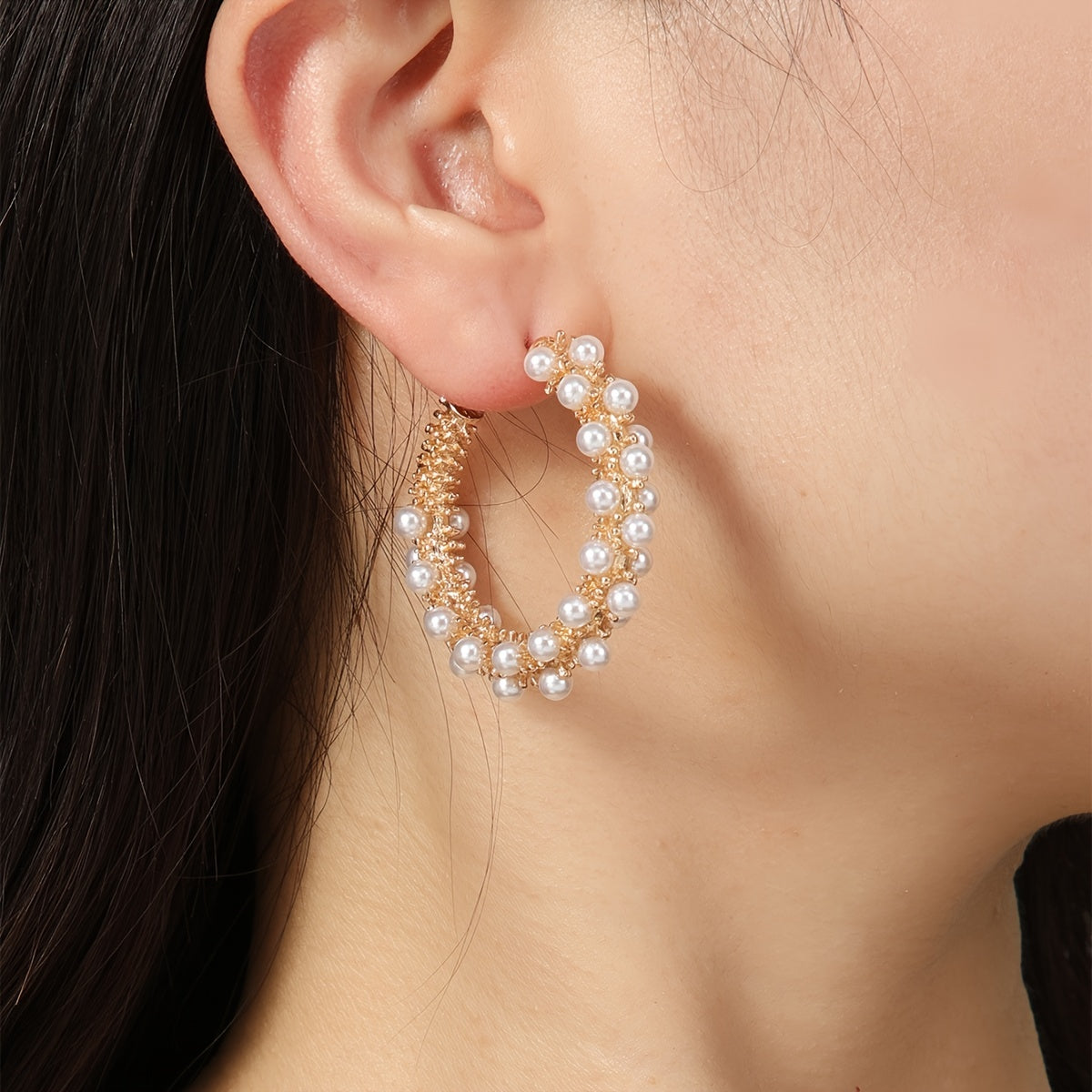 Add elegance to your look with these faux pearl wrapped hoop earrings. Crafted with 18K plated material, these earrings are perfect for women and girls.