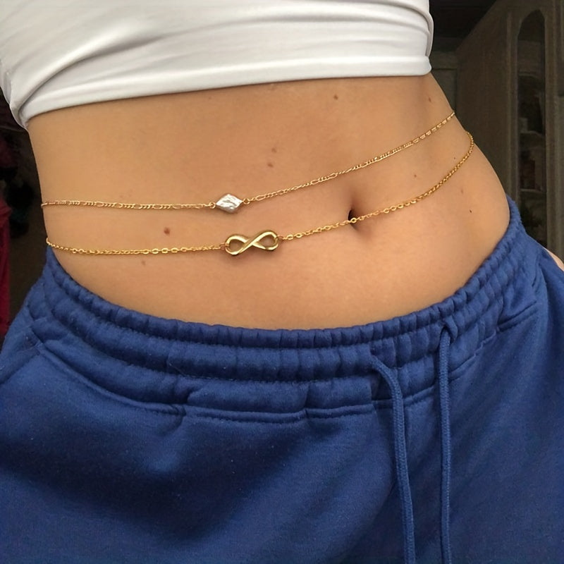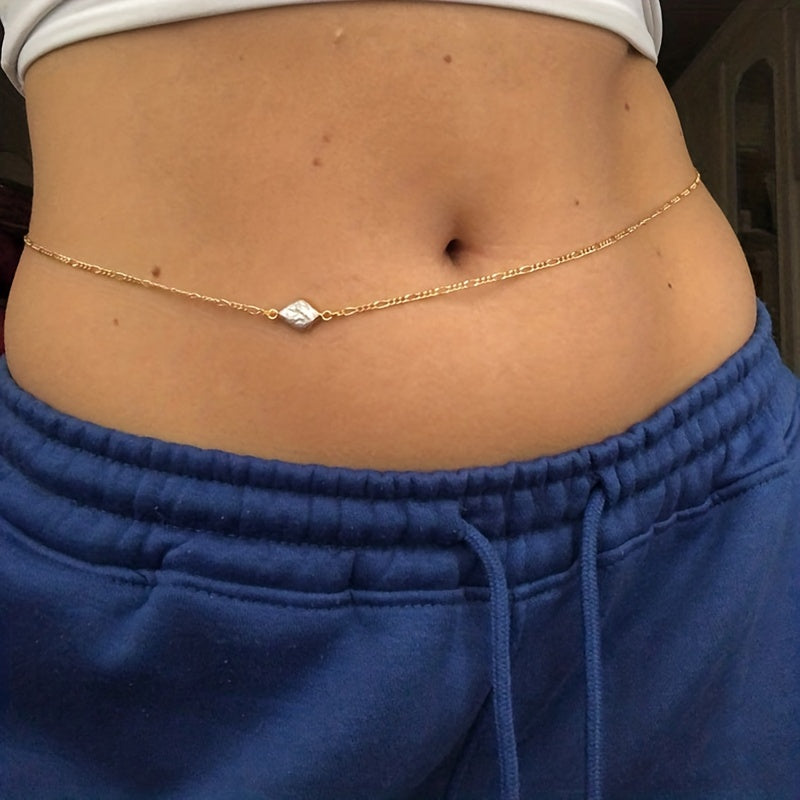Add a touch of glam to your beach look with this faux pearls beads thin waist chain. A perfect accessory for summer days.