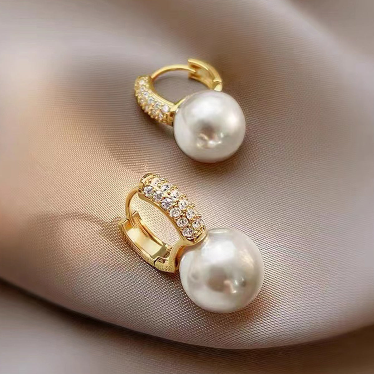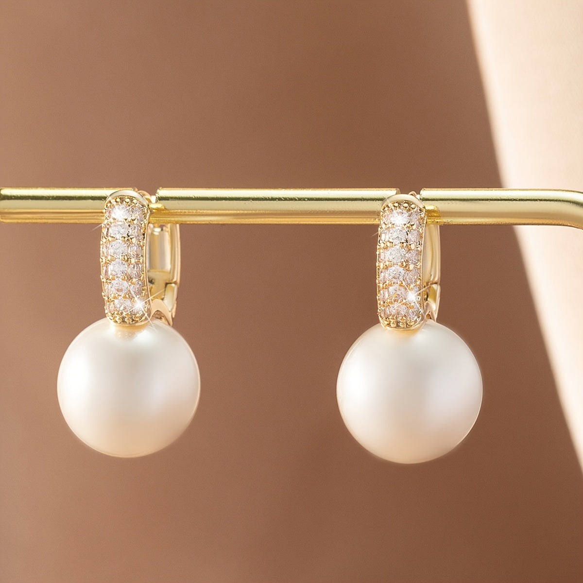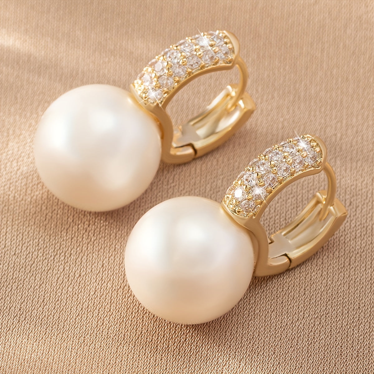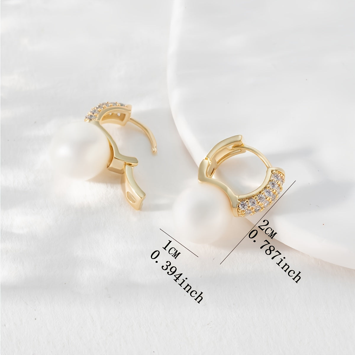 Elegant costume jewelry set for women and girls. Features faux pearls ear buckles and sparkly zircon ear studs. Perfect for prom or special occasions.