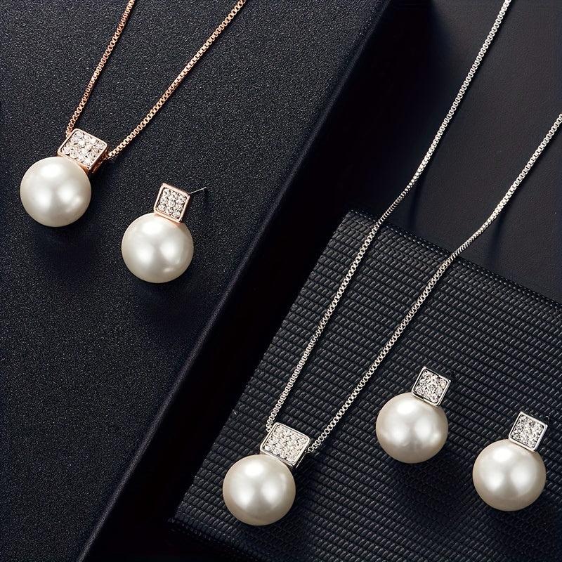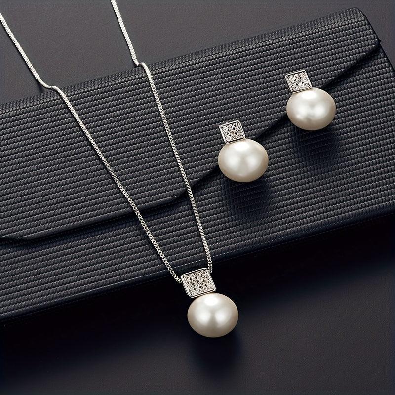This elegant set features a faux pearl pendant necklace and stud earrings, perfect for parties, birthdays, or evening celebrations. Make a lovely gift for your mother or girlfriend.