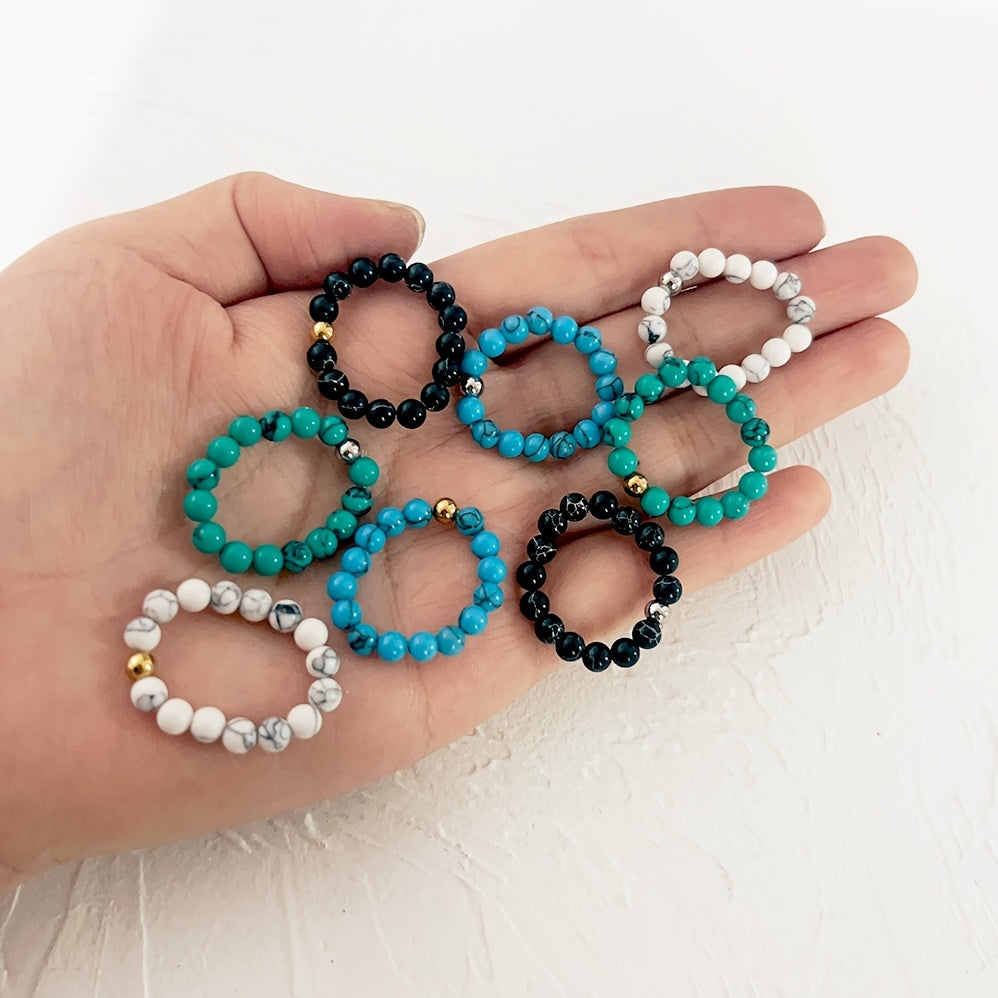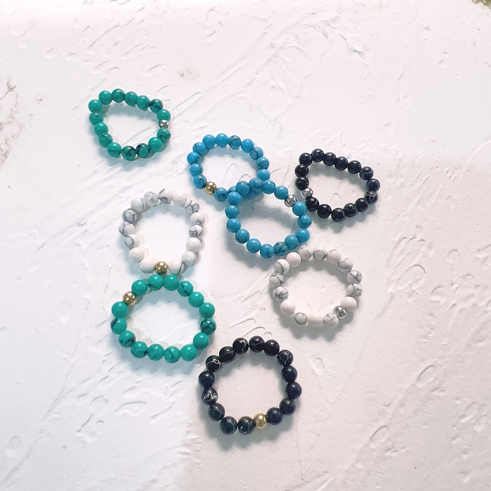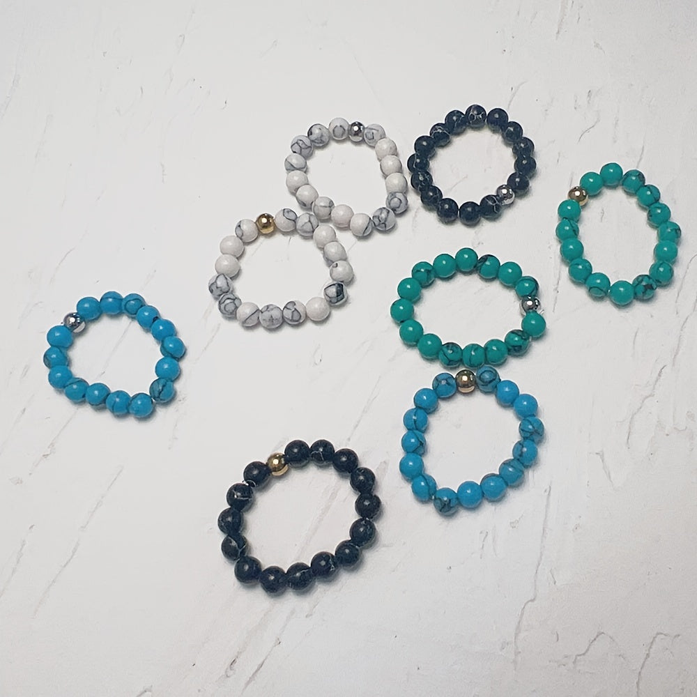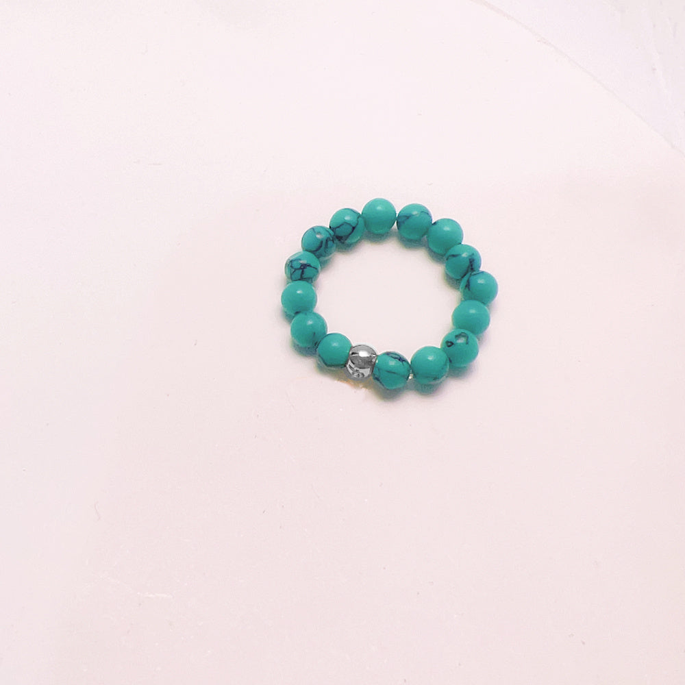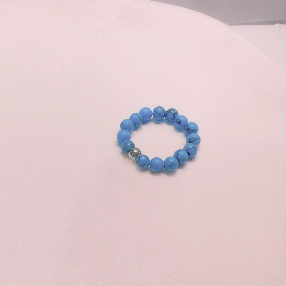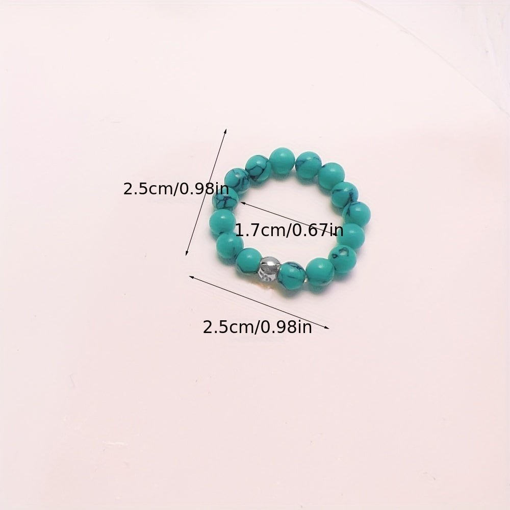 Add a touch of bohemian style to your vacation or holiday outfits with this beaded elastic ring featuring faux turquoise beads. Perfect for women and girls.