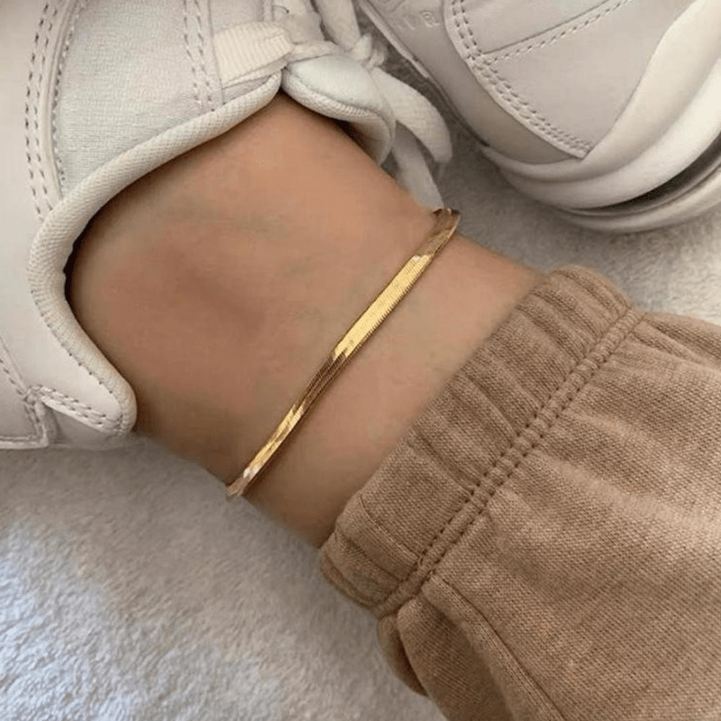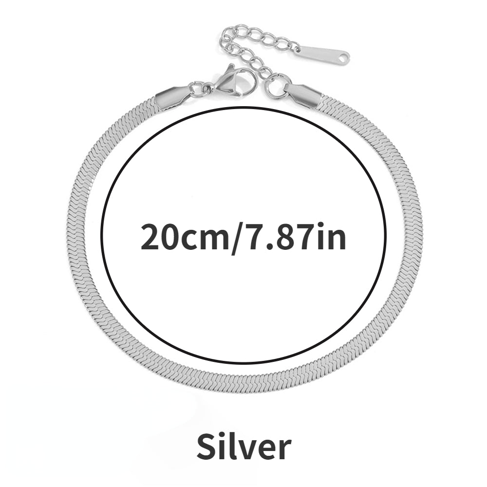 Add a touch of elegance with this flat snake chain anklet. Made of high-quality alloy, it's a dainty accessory for your ankle.