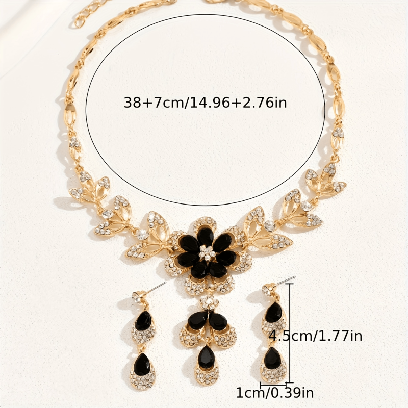 This elegant jewelry set includes 1 pair of dangle earrings and 1 necklace with pretty flower design. The set features red and green zirconia inlays, making it perfect for various occasions.