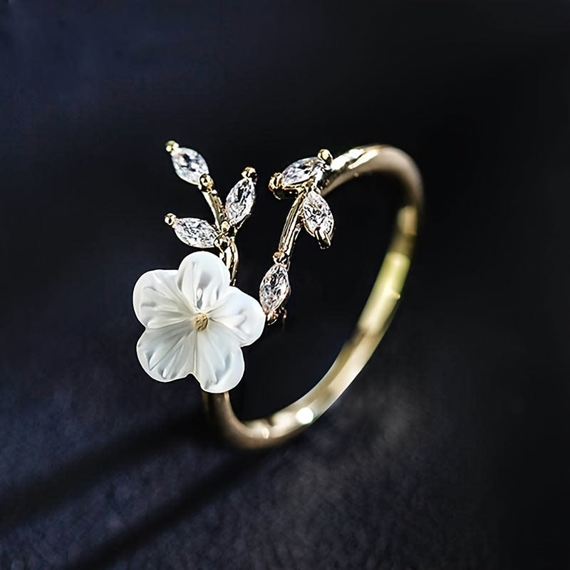 This stunning flower leaf-shaped ring is the perfect accessory for weddings, engagements, or cocktail parties. It also makes a wonderful gift for someone special.