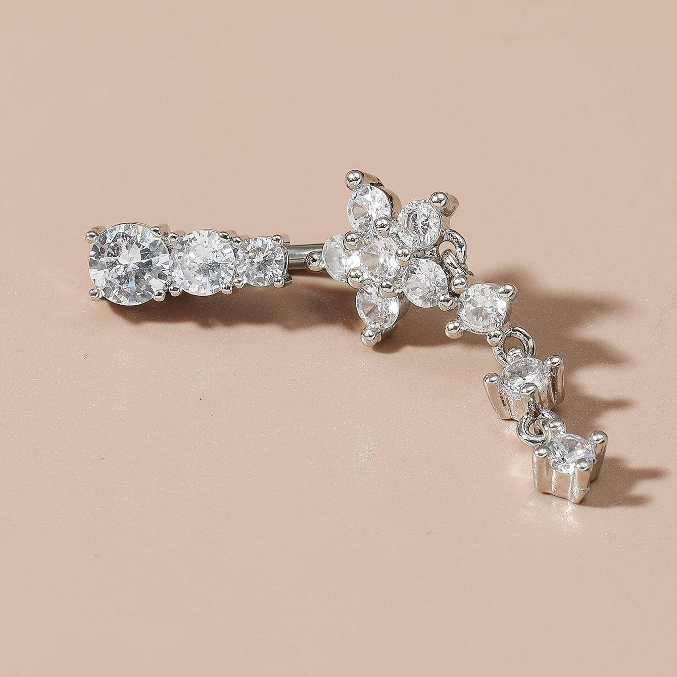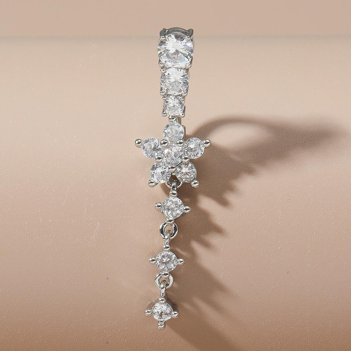 Enhance your belly jewelry collection with this stunning flower pendant stainless steel belly button ring featuring an inlaid zircon. Perfect for adding a touch of elegance to your look.