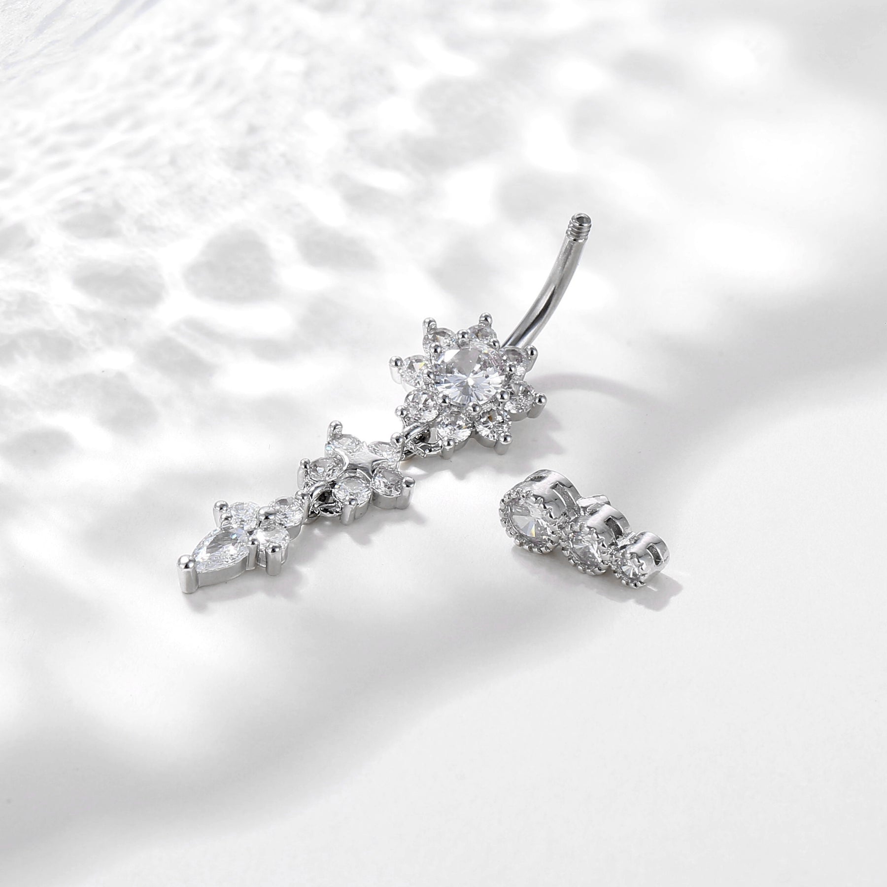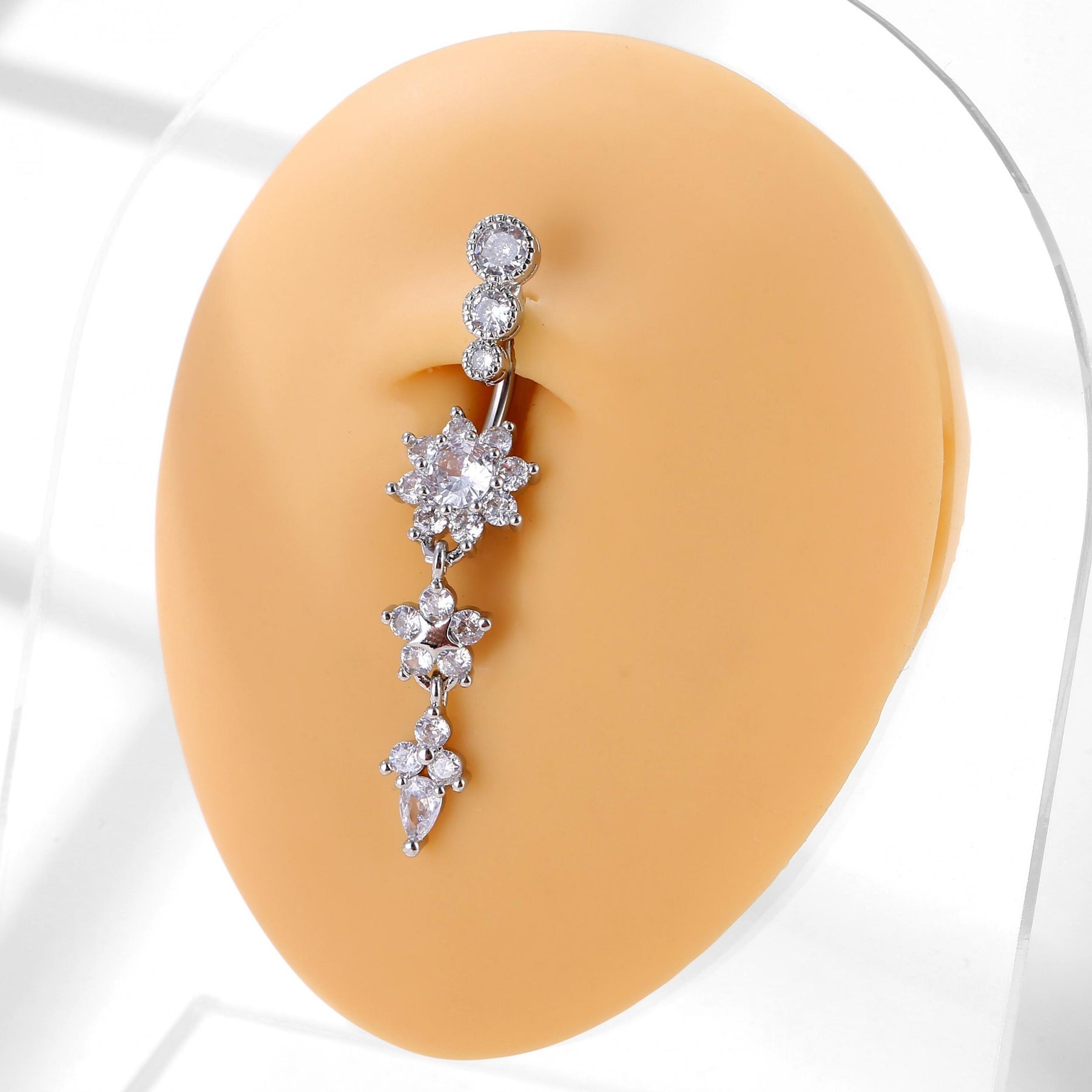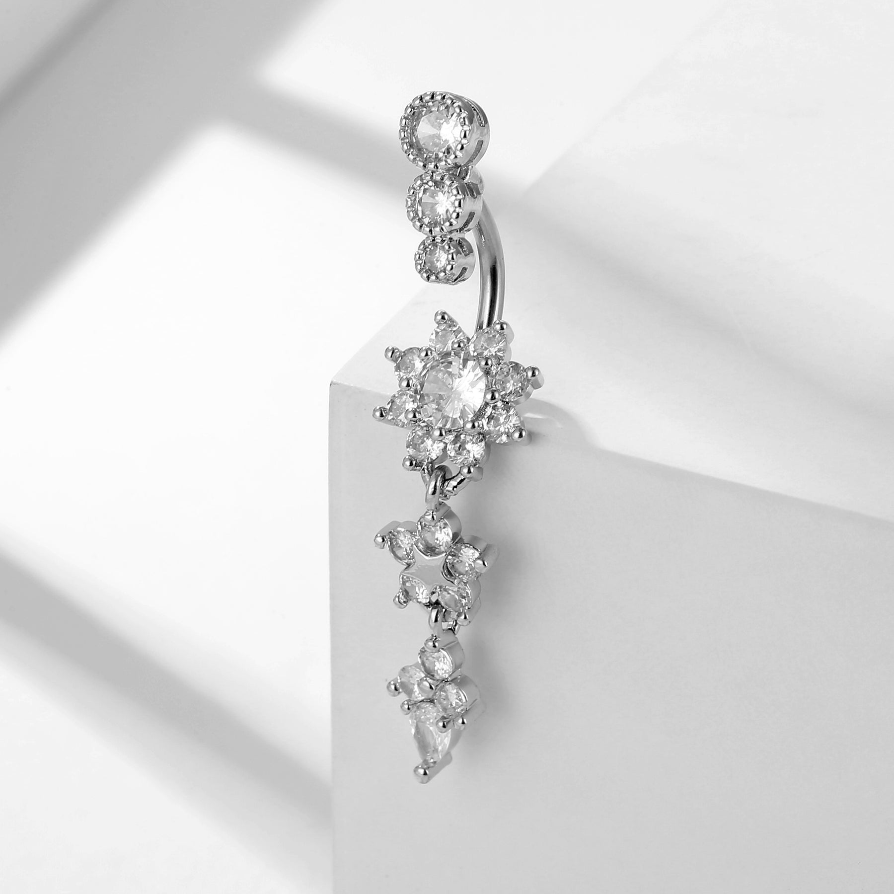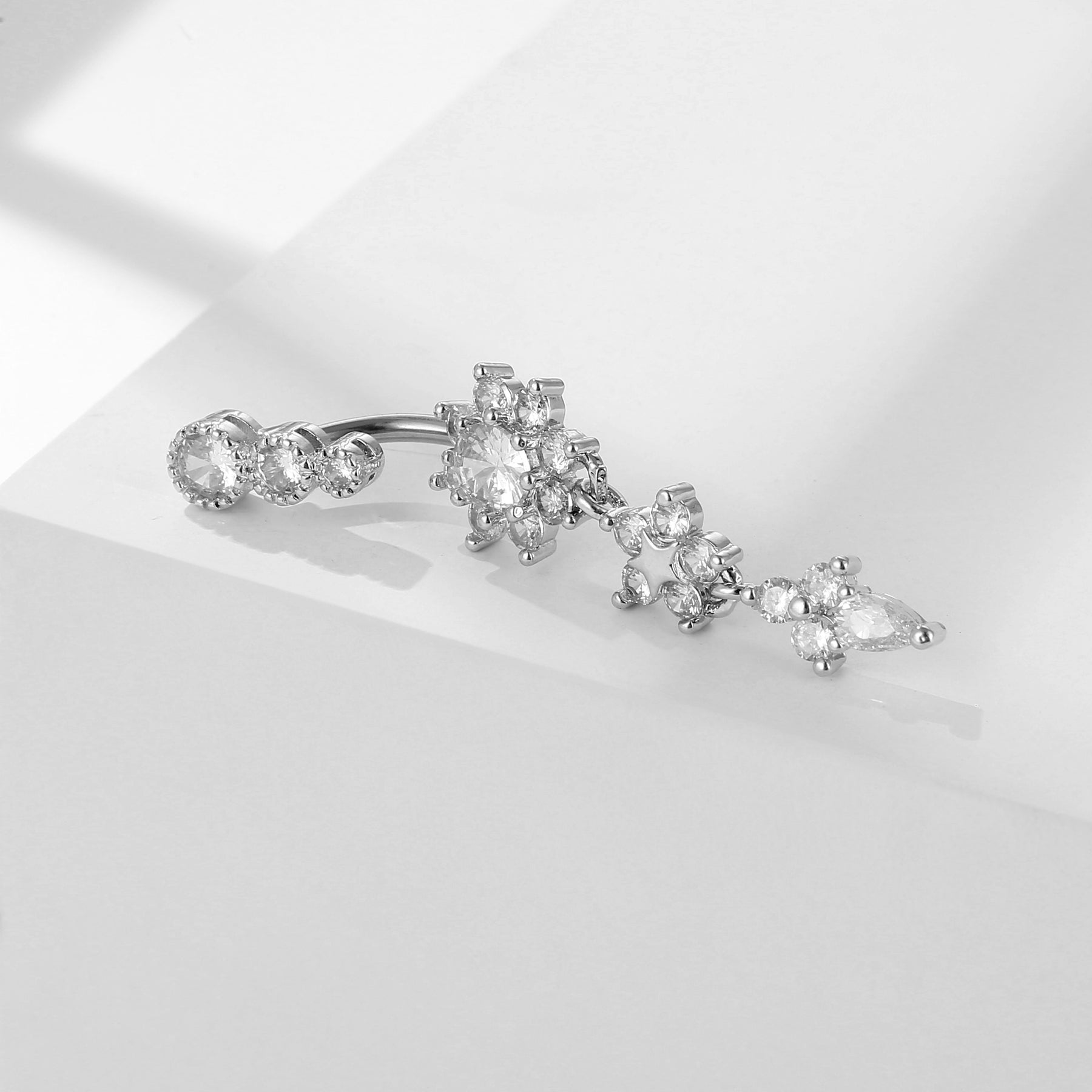 Add a touch of elegance to your belly jewelry collection with this stunning flower tassel pendant belly button ring featuring inlaid zircon accents.