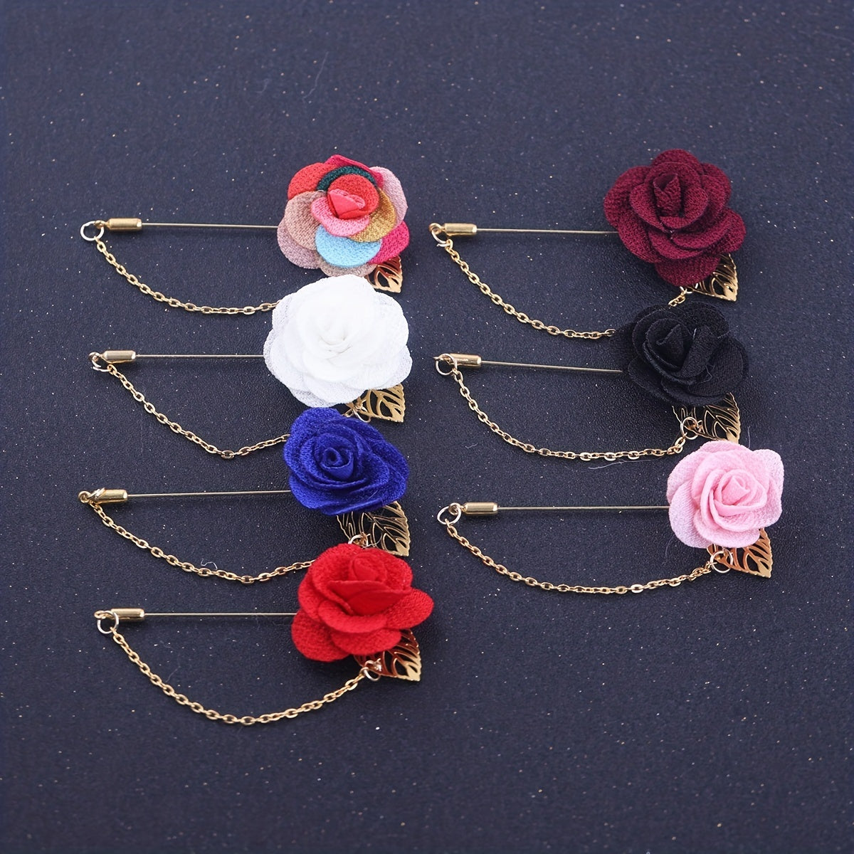 Elegant and classy flower wedding corsage brooch pin designed for women's suits. Features a chain for added style.