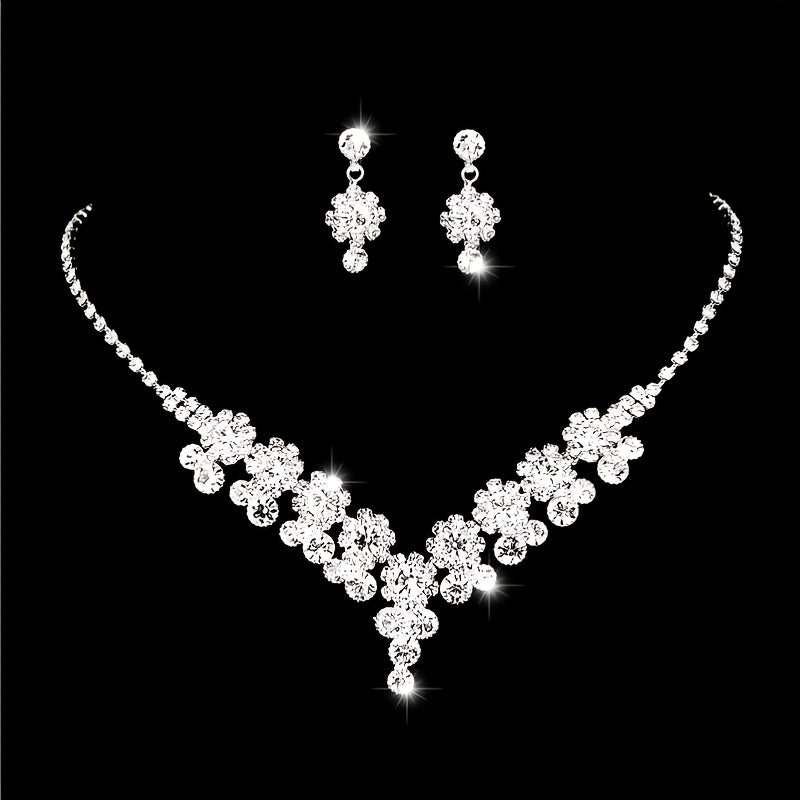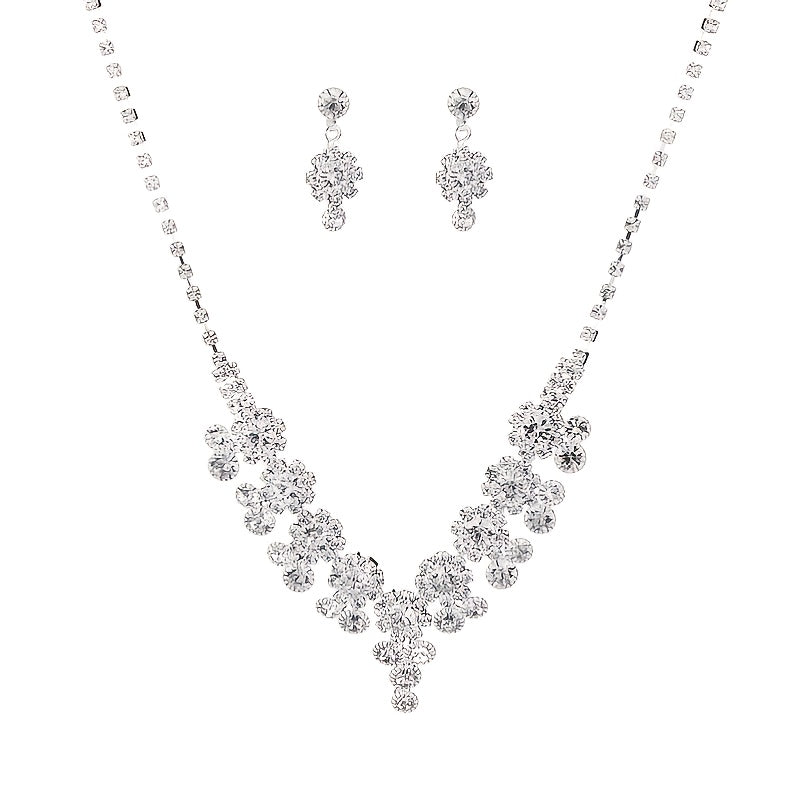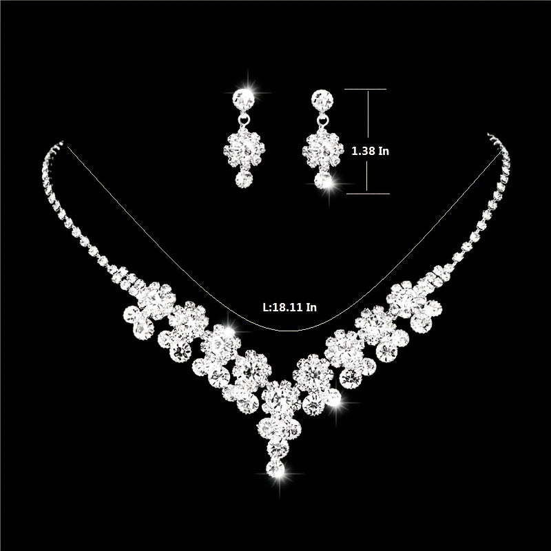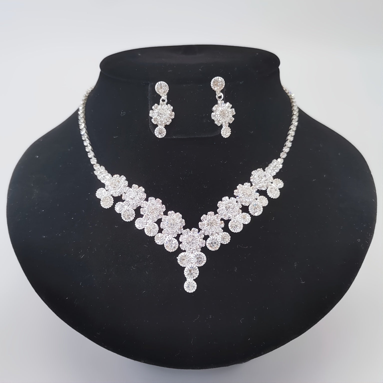 This stunning jewelry set features a flower-shaped zircon drop necklace and matching dangle earrings. Perfect for adding a touch of elegance to any outfit, this set is ideal for birthdays and anniversaries.