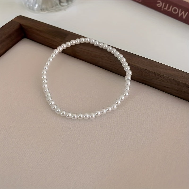 Elegant French retro style faux pearl stretch bracelet for a touch of vintage charm.
