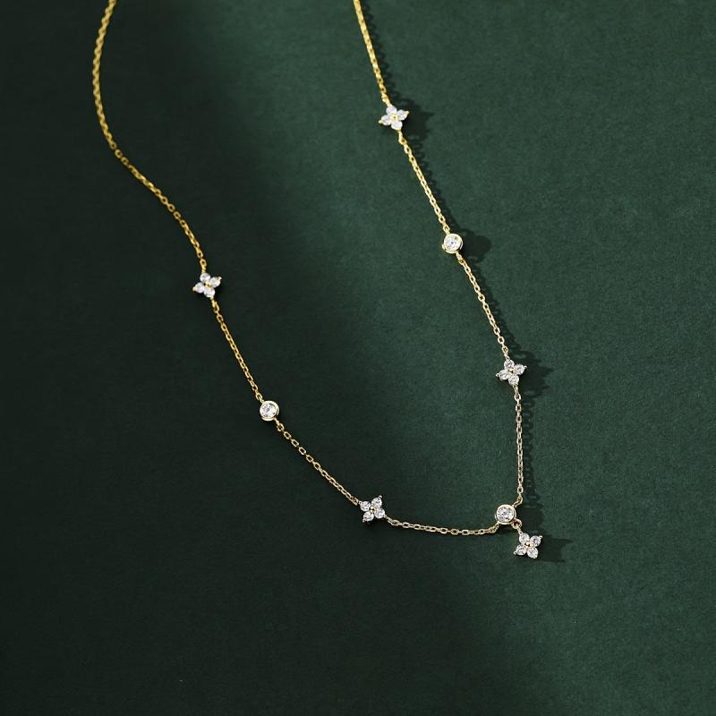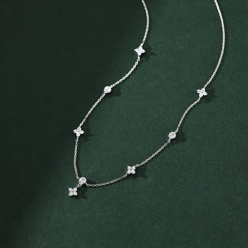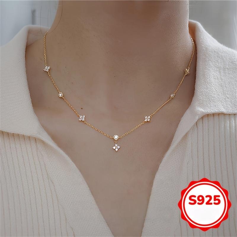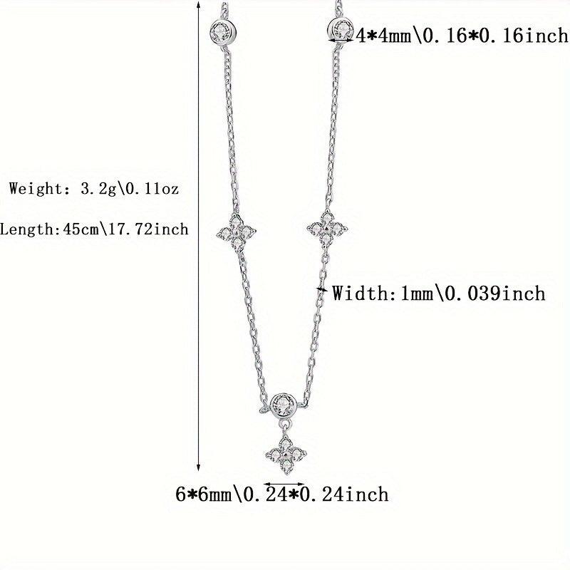 Elegant French style necklace made of 925 sterling silver featuring a four leaf clover design with synthetic cubic zirconia. Perfect for daily wear or as a thoughtful gift.