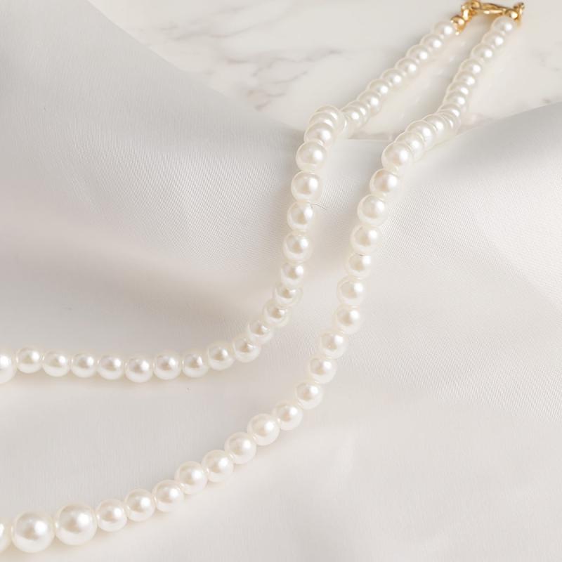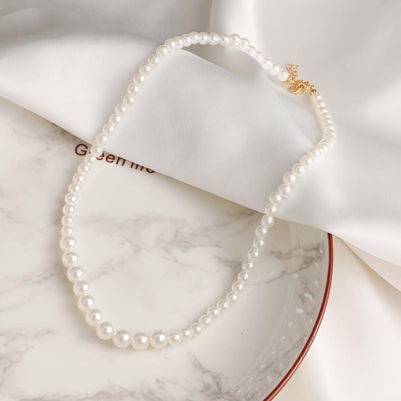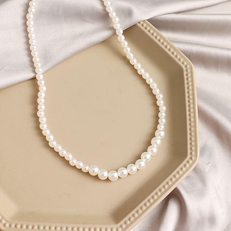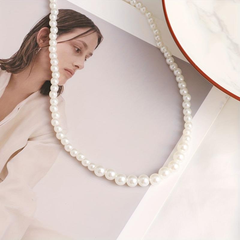 Elegant faux pearl necklace with adjustable metal chain, perfect for daily wear or banquets. Versatile all-season jewelry gift for women.