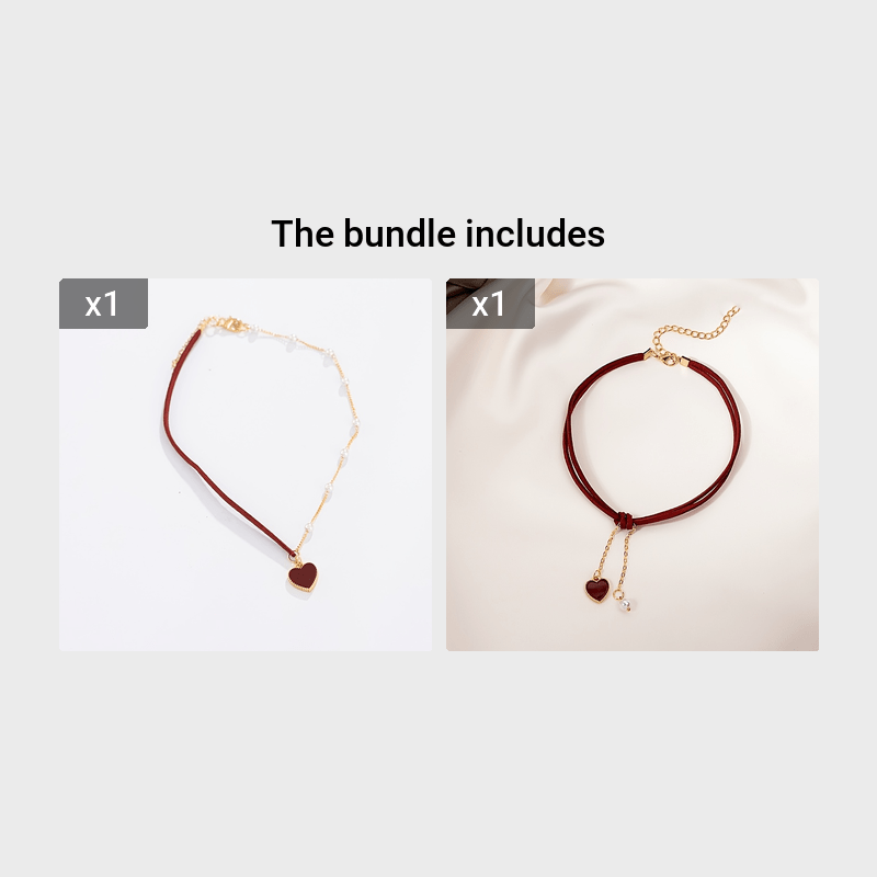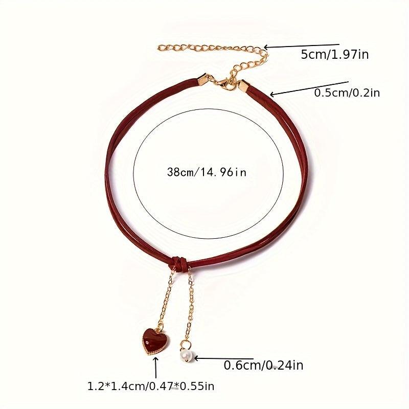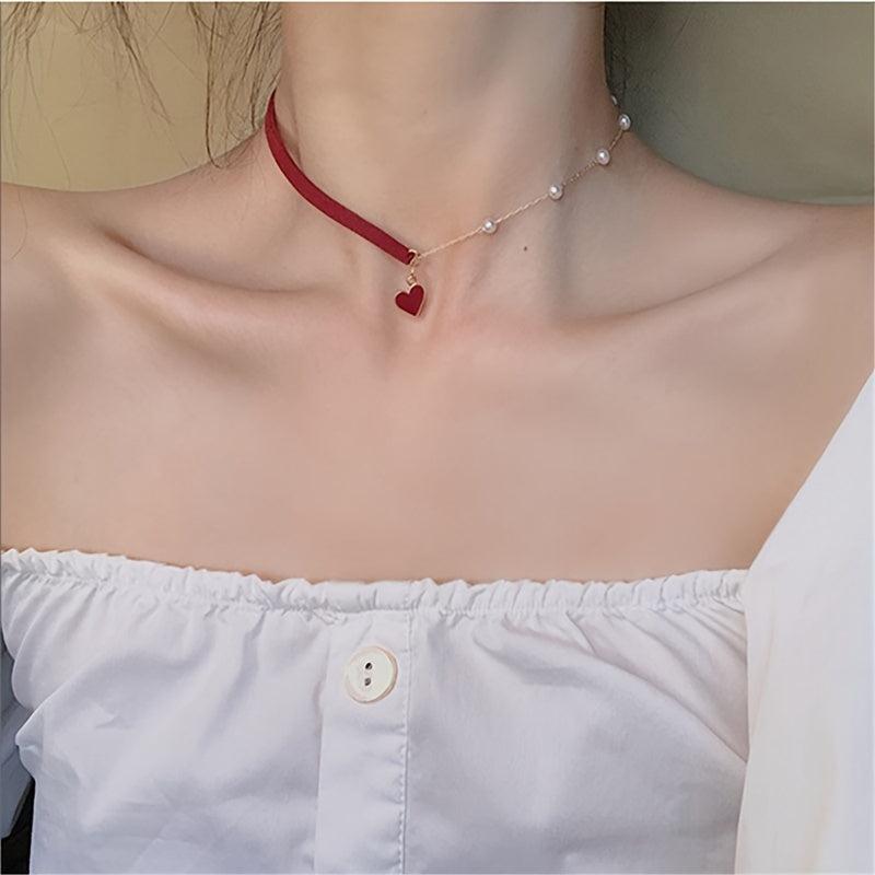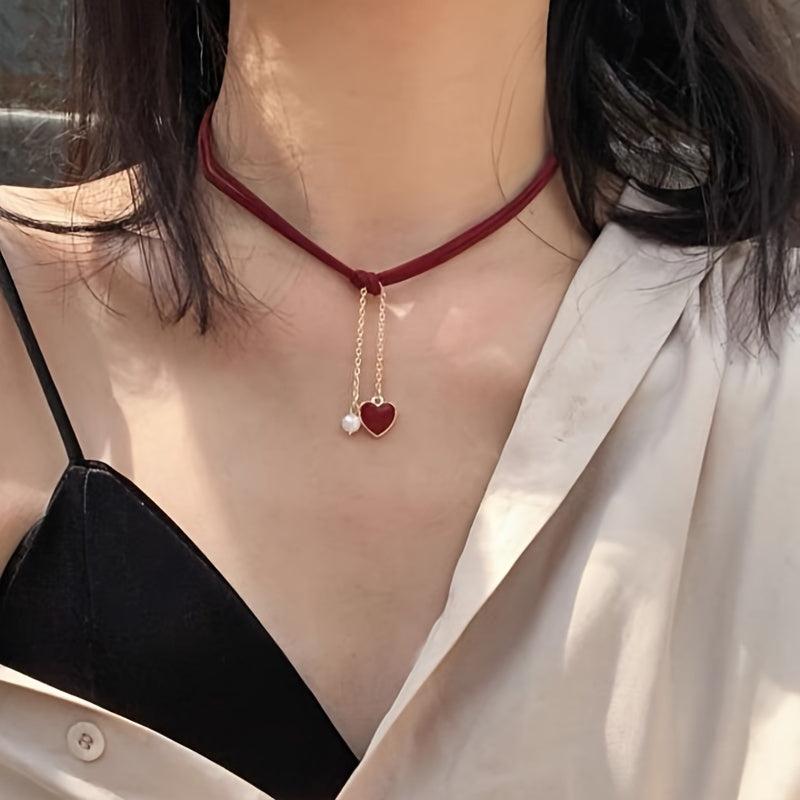 French Style Red Velvet Heart Necklace December Birthstone Jewelry