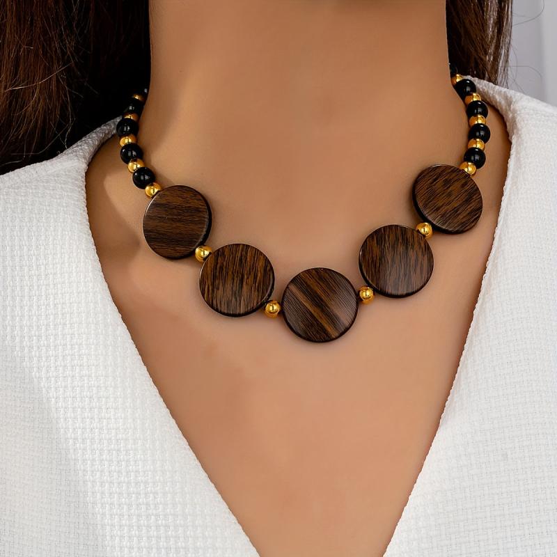 Add a touch of French vintage flair to your outfit with this acrylic print pendant necklace that complements your collarbone. Perfect for adding a street style edge.