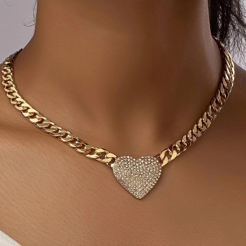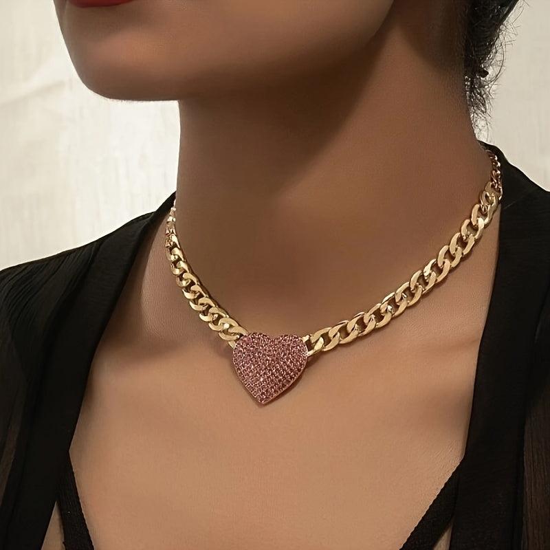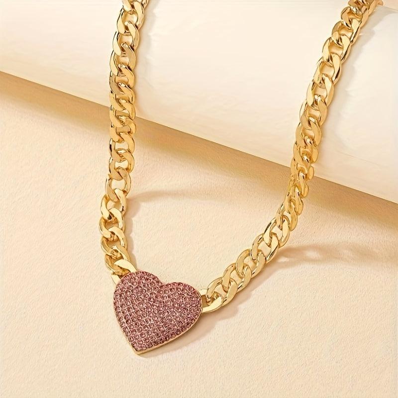 Add a touch of vintage charm to your outfit with this French-inspired heart necklace featuring a sparkling pink gemstone center and a golden tone chain. Perfect for daily wear or special occasions.