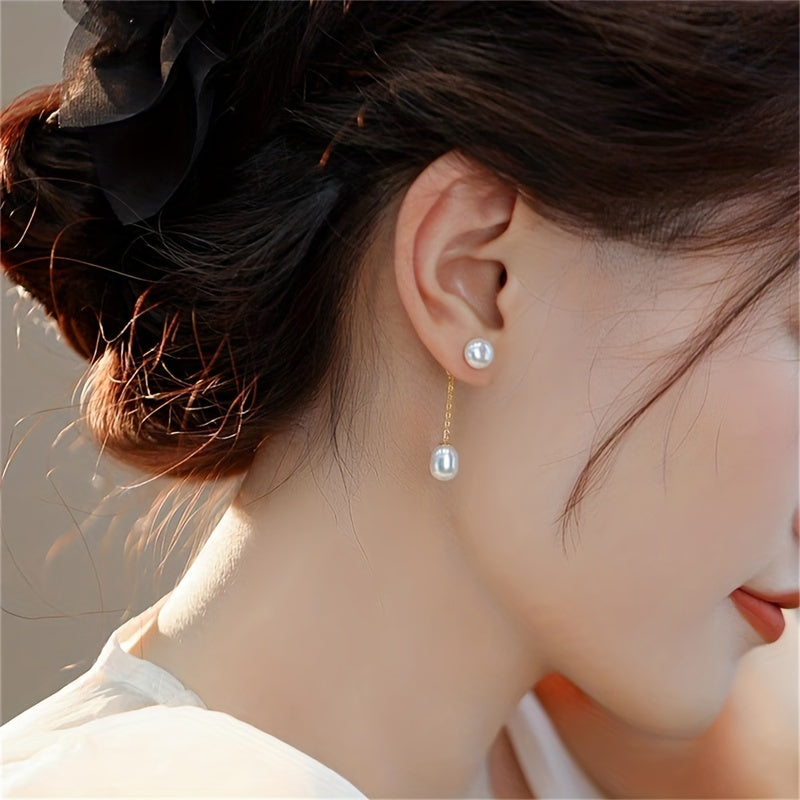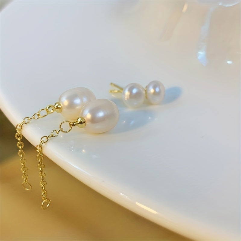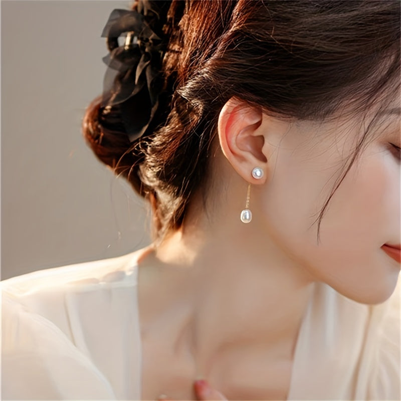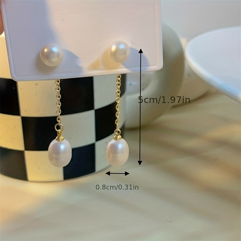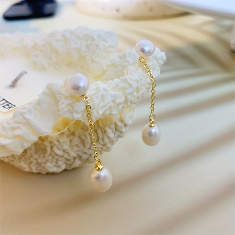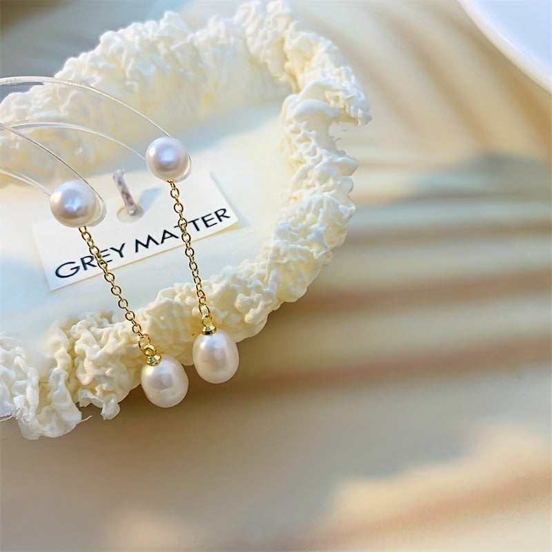 Add a touch of elegance to your outfit with these stylish dangle earrings. Made with fresh water pearls and copper for a minimalist Japanese-inspired look.