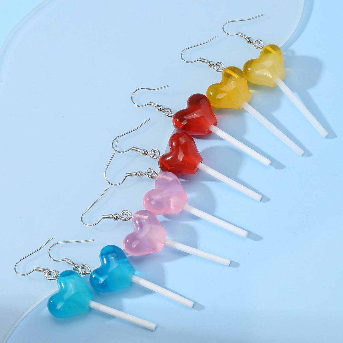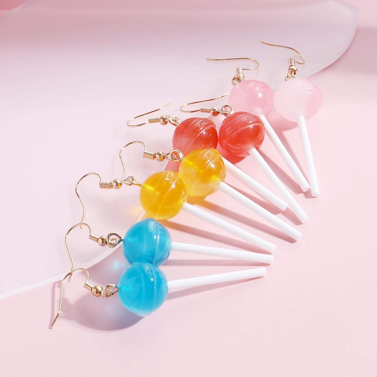 These creative lollipop earrings are perfect for parties and fun occasions. Make a playful statement with these unique resin ear accessories.