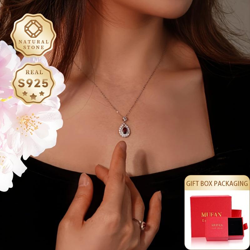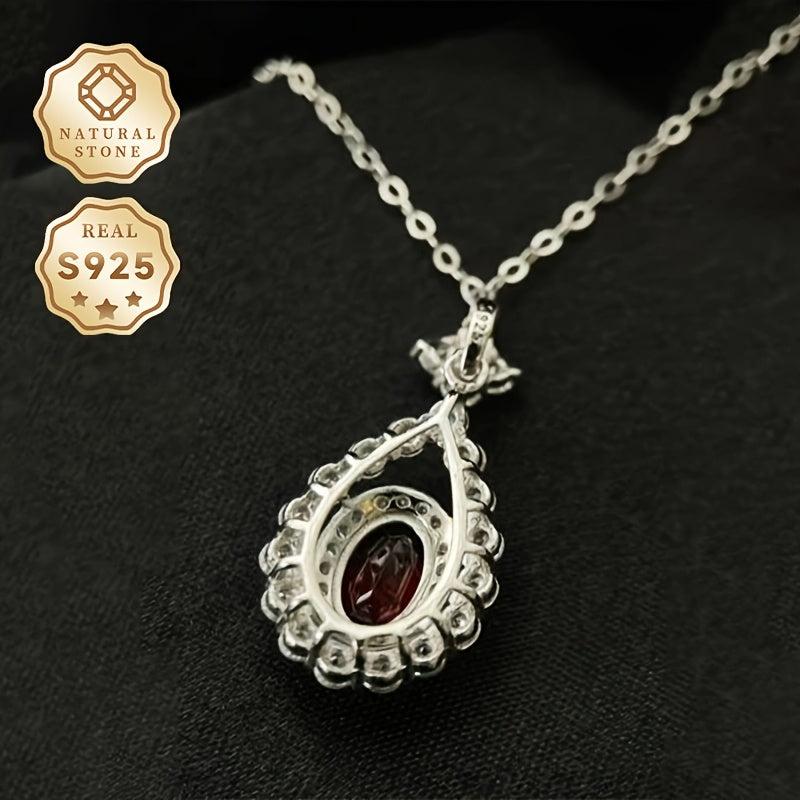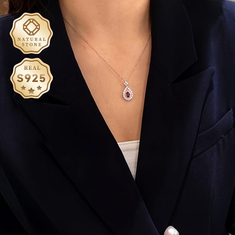 Elegant women's pendant necklace featuring a 5-7mm garnet pendant crafted from natural stone. Each stone varies in shape and pattern, making each piece unique.