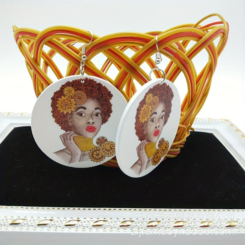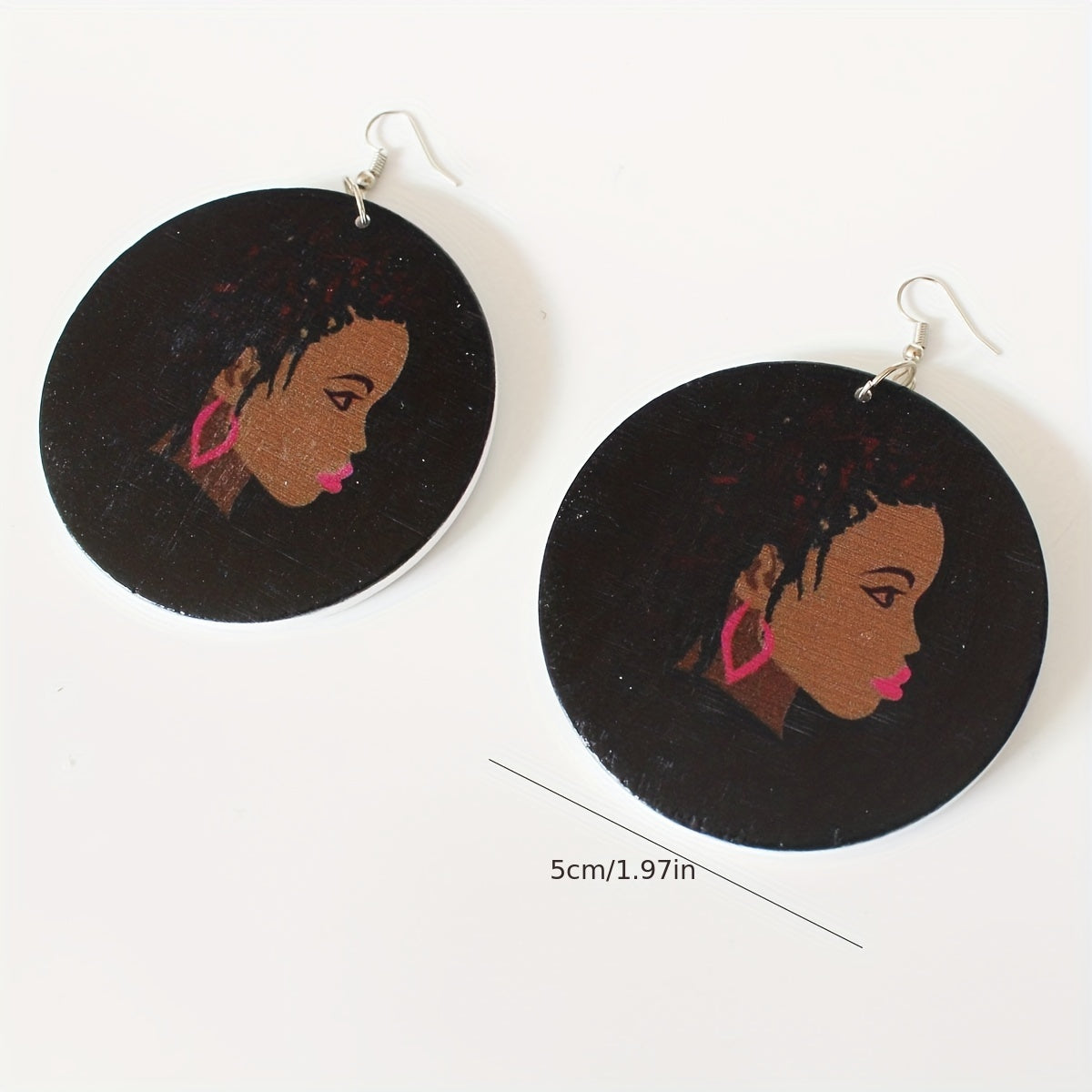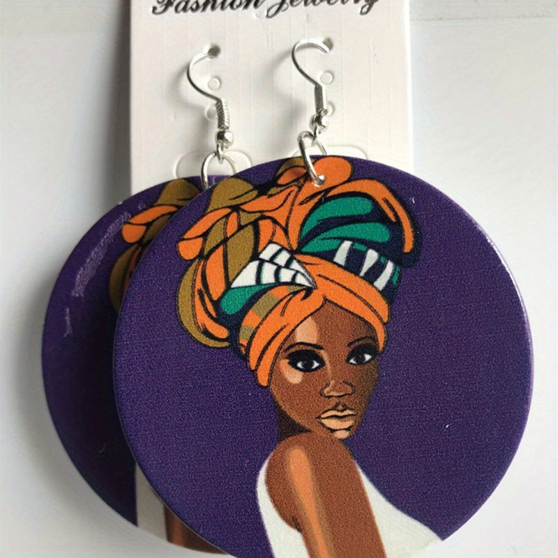 Elevate your style with these unique exaggerated geometric round African head pattern dangle earrings. A perfect gift for a fashion-forward female.