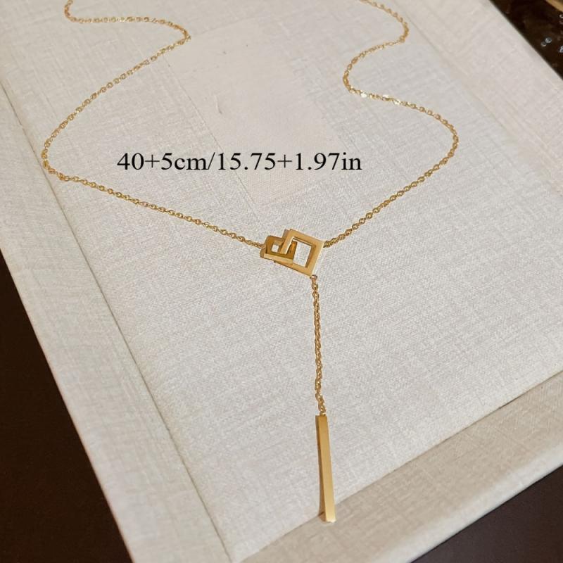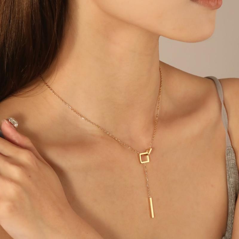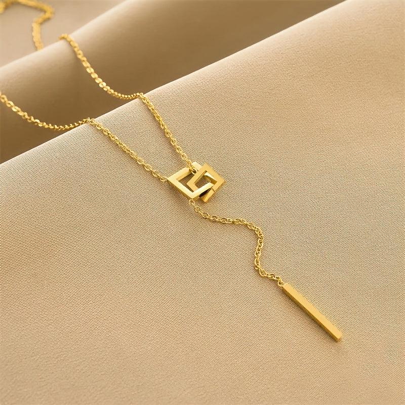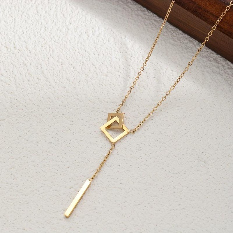 This minimalist necklace features a sexy geometric clasp pendant in a golden tone metal. Its delicate chain makes it versatile for everyday wear or formal occasions. A perfect gift year-round for women.