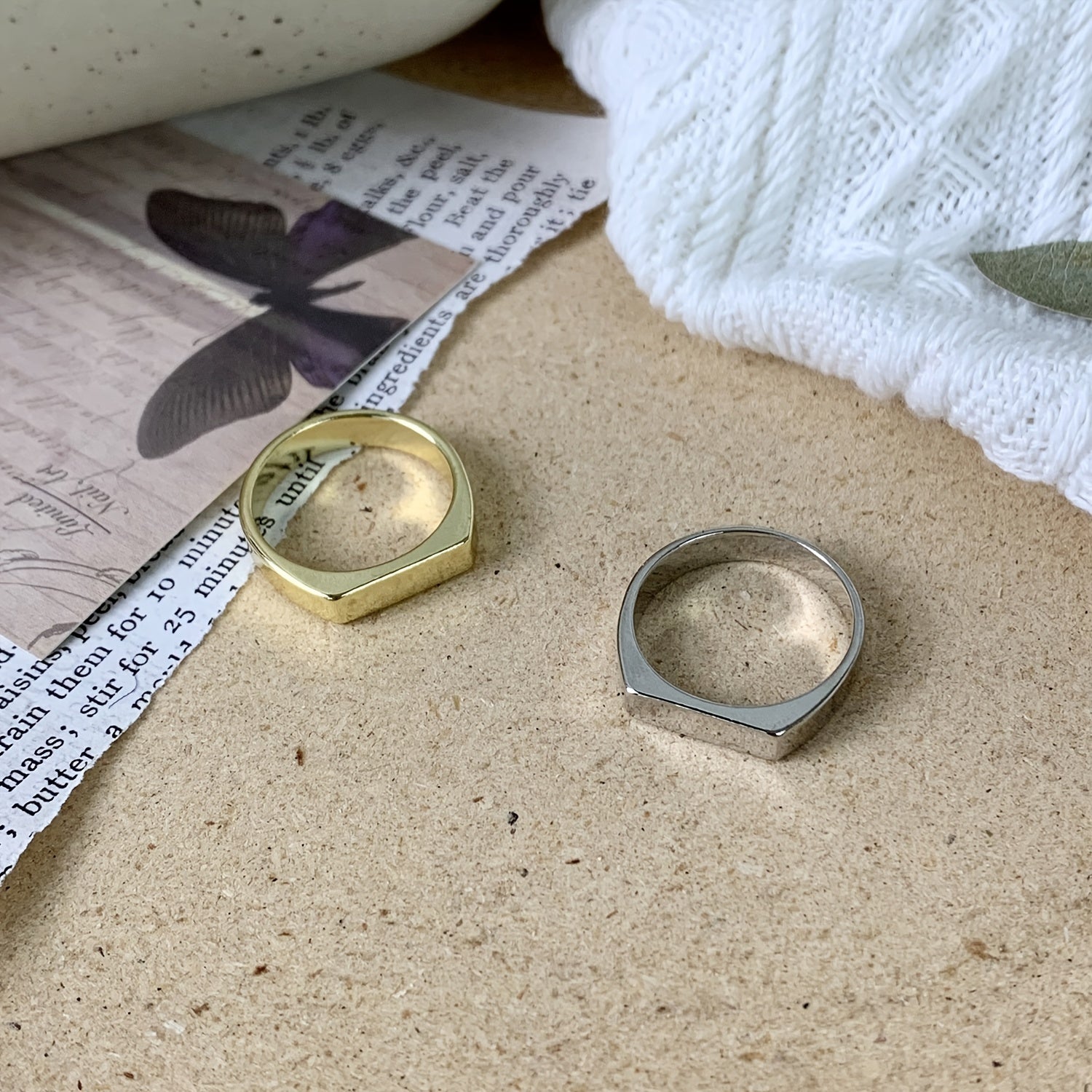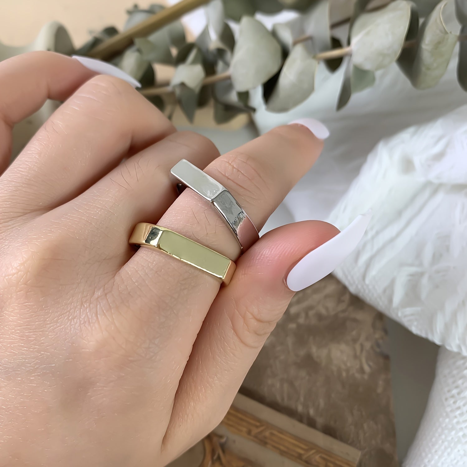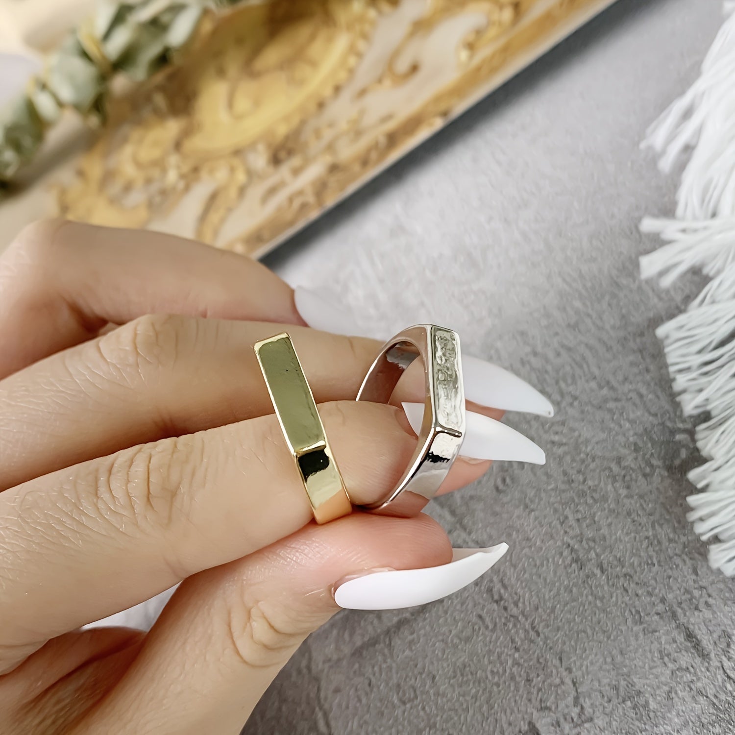 Add a touch of modern elegance to your daily or party outfits with this geometric ring. The rectangular flat surface design makes it a versatile accessory that complements any style.