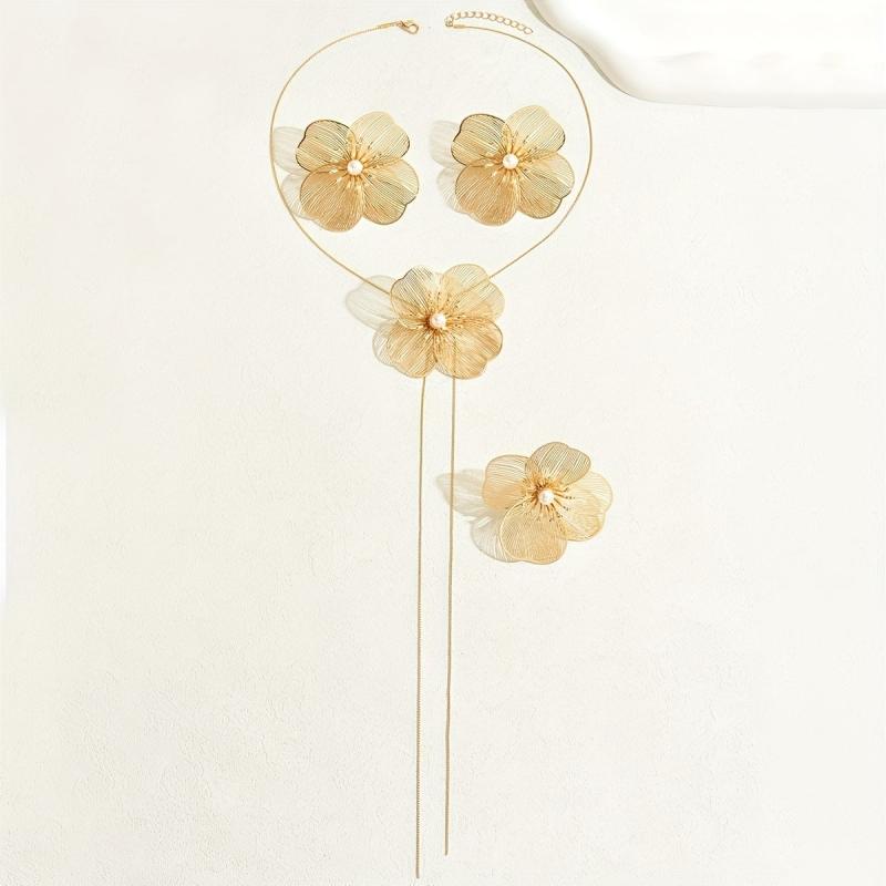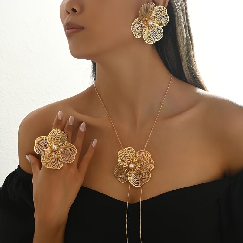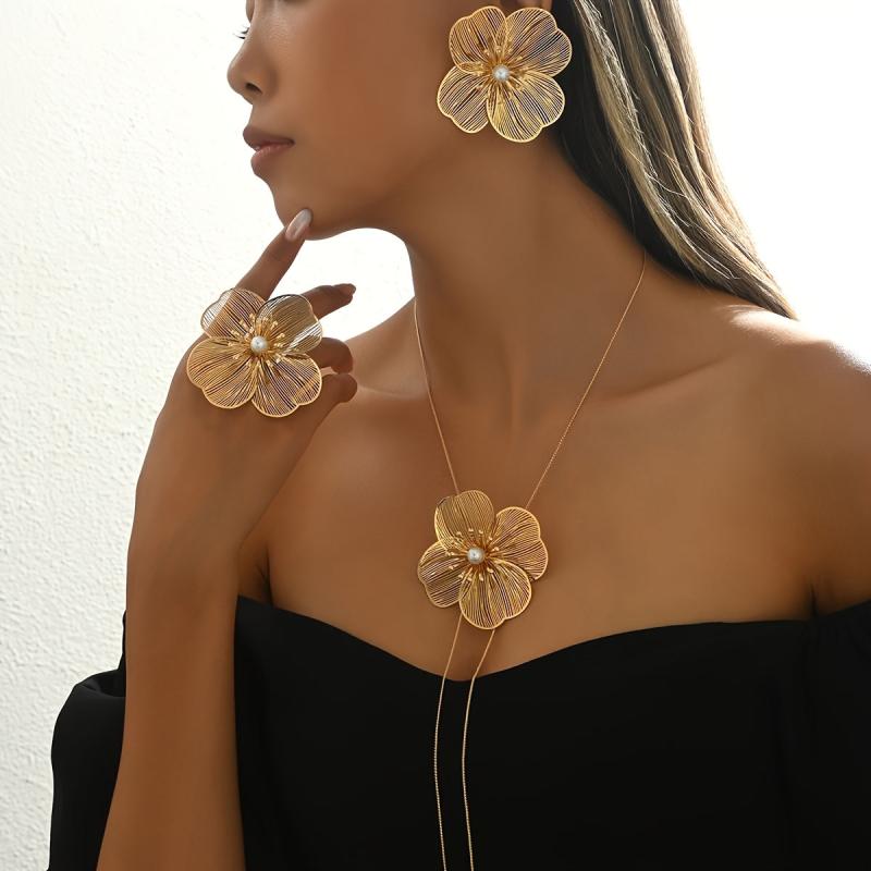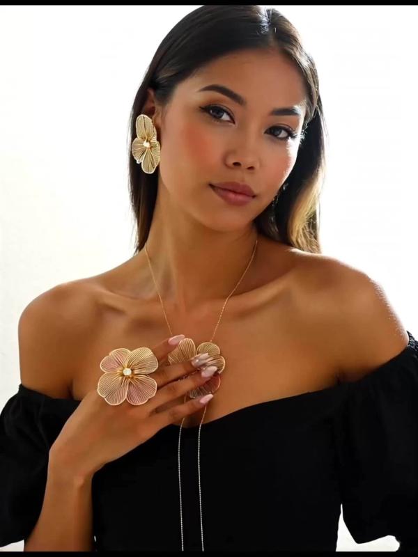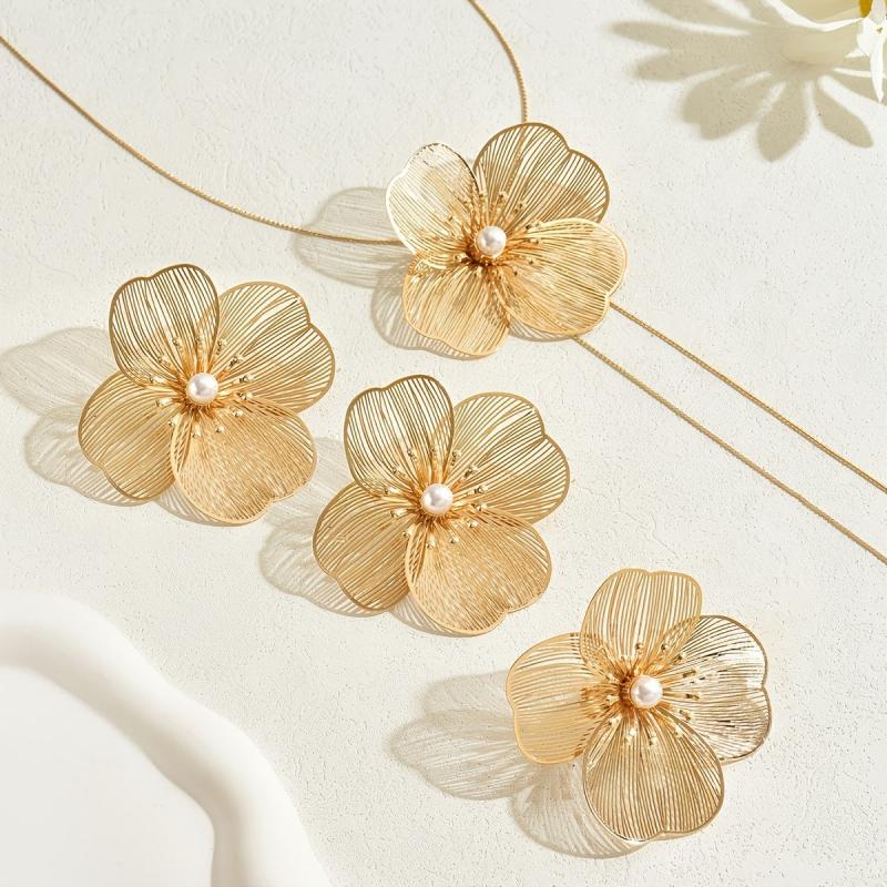 Elevate your style with this stunning 4-piece jewelry set featuring geometric hollow designs and faux pearl accents. Perfect for adding a touch of elegance to your casual attire or for making a statement at parties.