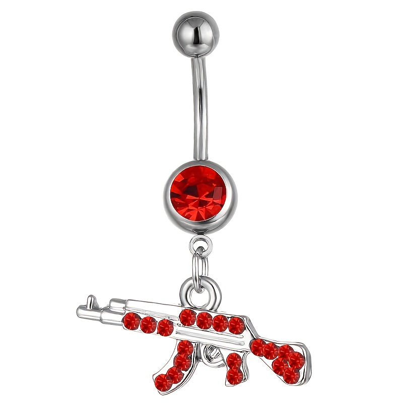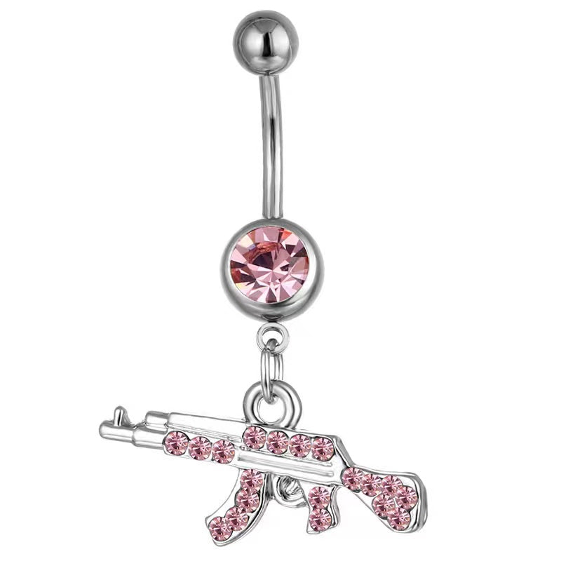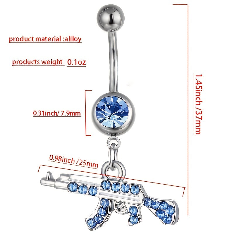 This hip hop style navel nail features a geometric mini machine gun shape pendant, perfect for adding bold and edgy flair to your outfit.
