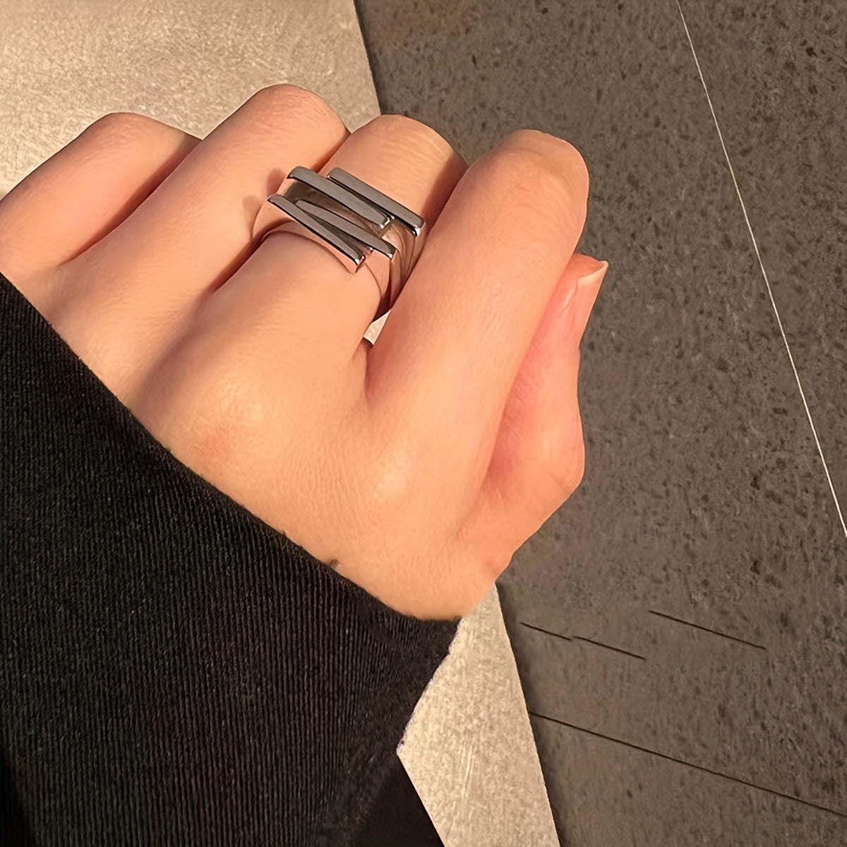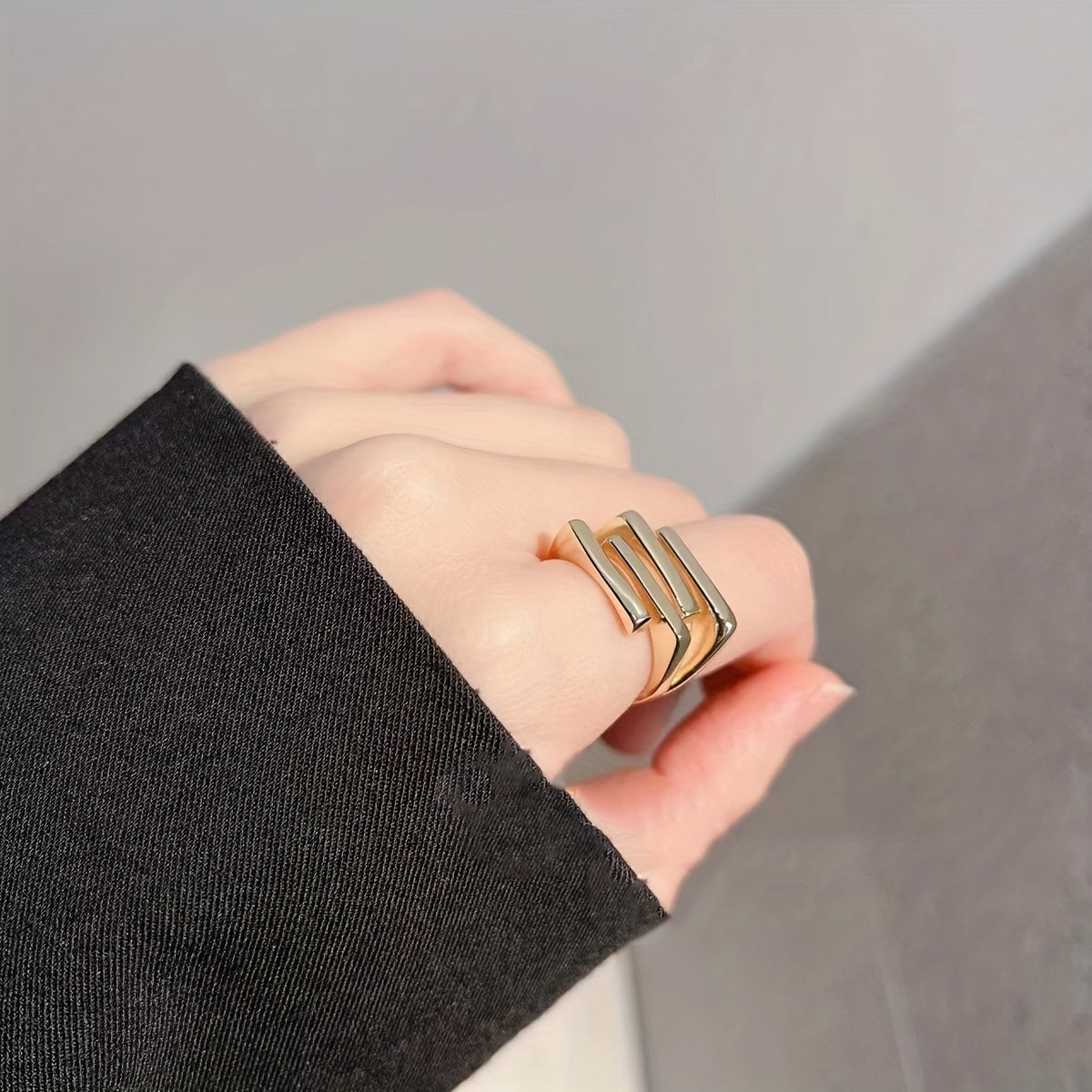 Elegant and trendy geometric multilayer ring made of copper, perfect for women and girls. Add a touch of sophistication to your outfit with this stylish accessory.