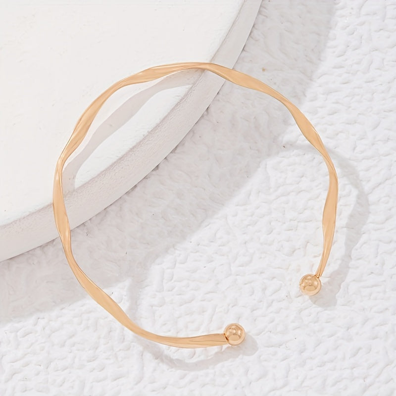 This geometric open bangle bracelet is the perfect accessory for parties or as a gift for a jewelry lover. Its elegant design is sure to impress.