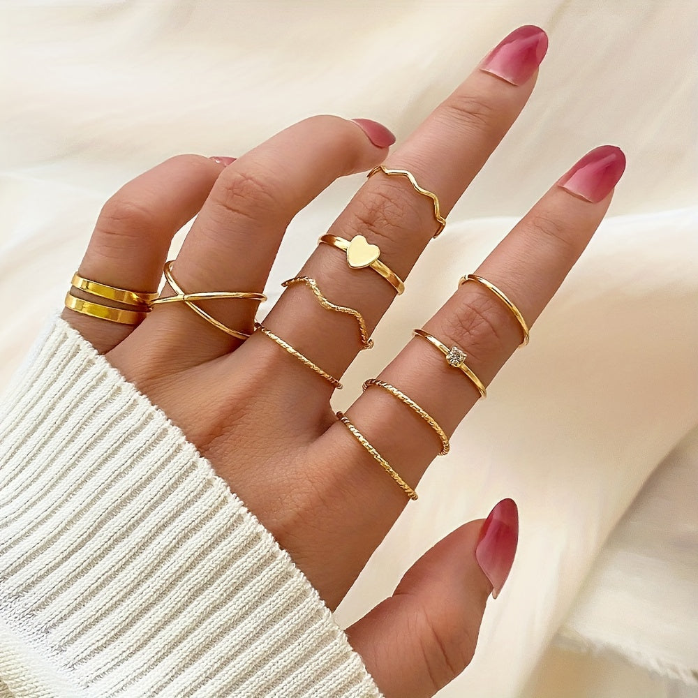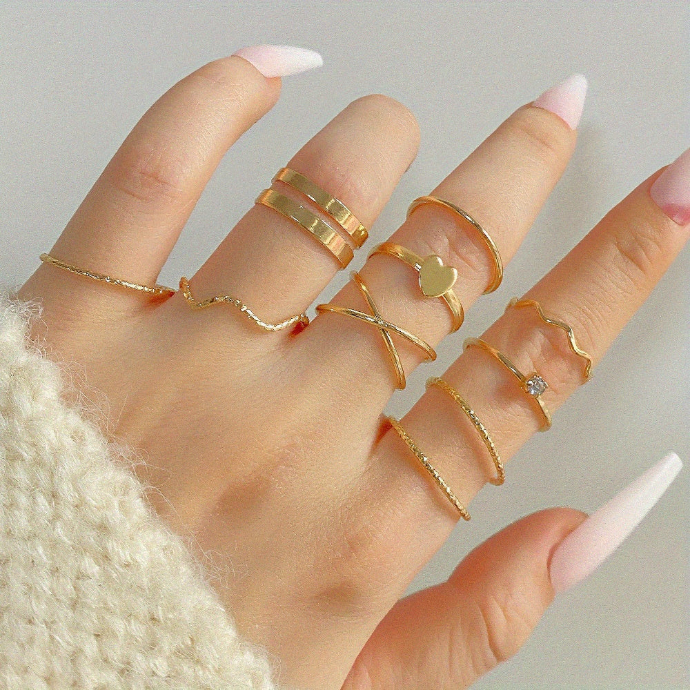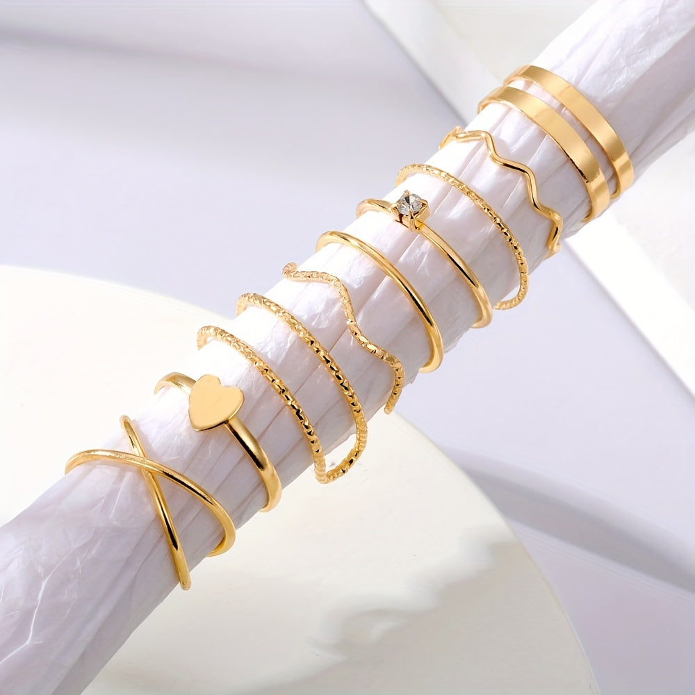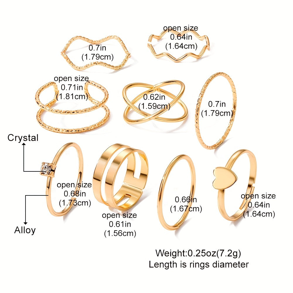 Enhance your style with this geometric ring set featuring inlaid rhinestones. Perfect for a hip hop look and adding a touch of glam to your fingers.
