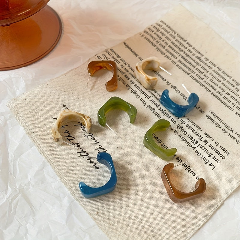 These hoop earrings feature a retro Japanese style design with geometric shapes. They are versatile ornaments perfect for women and girls.