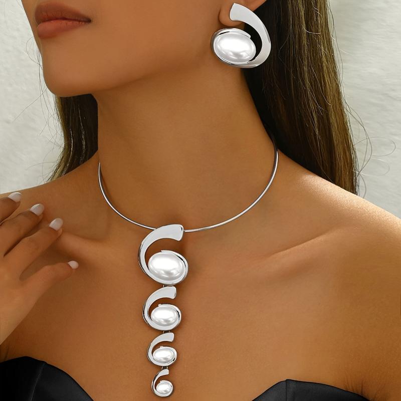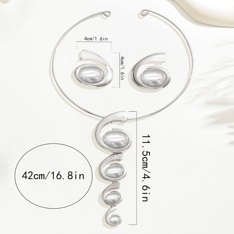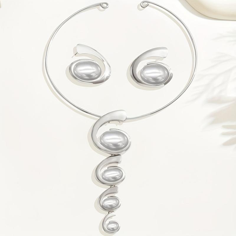 Elevate your style with this stunning two-piece jewelry set featuring a gradient geometric spiral snail design. The oval artificial pendant necklace and matching earrings are perfect for adding a touch of elegance to any outfit.