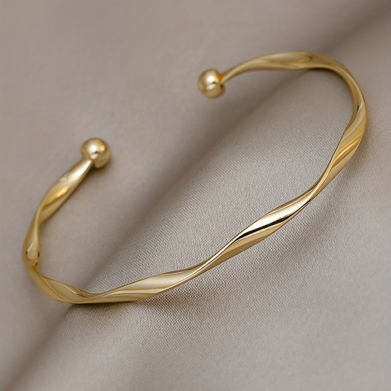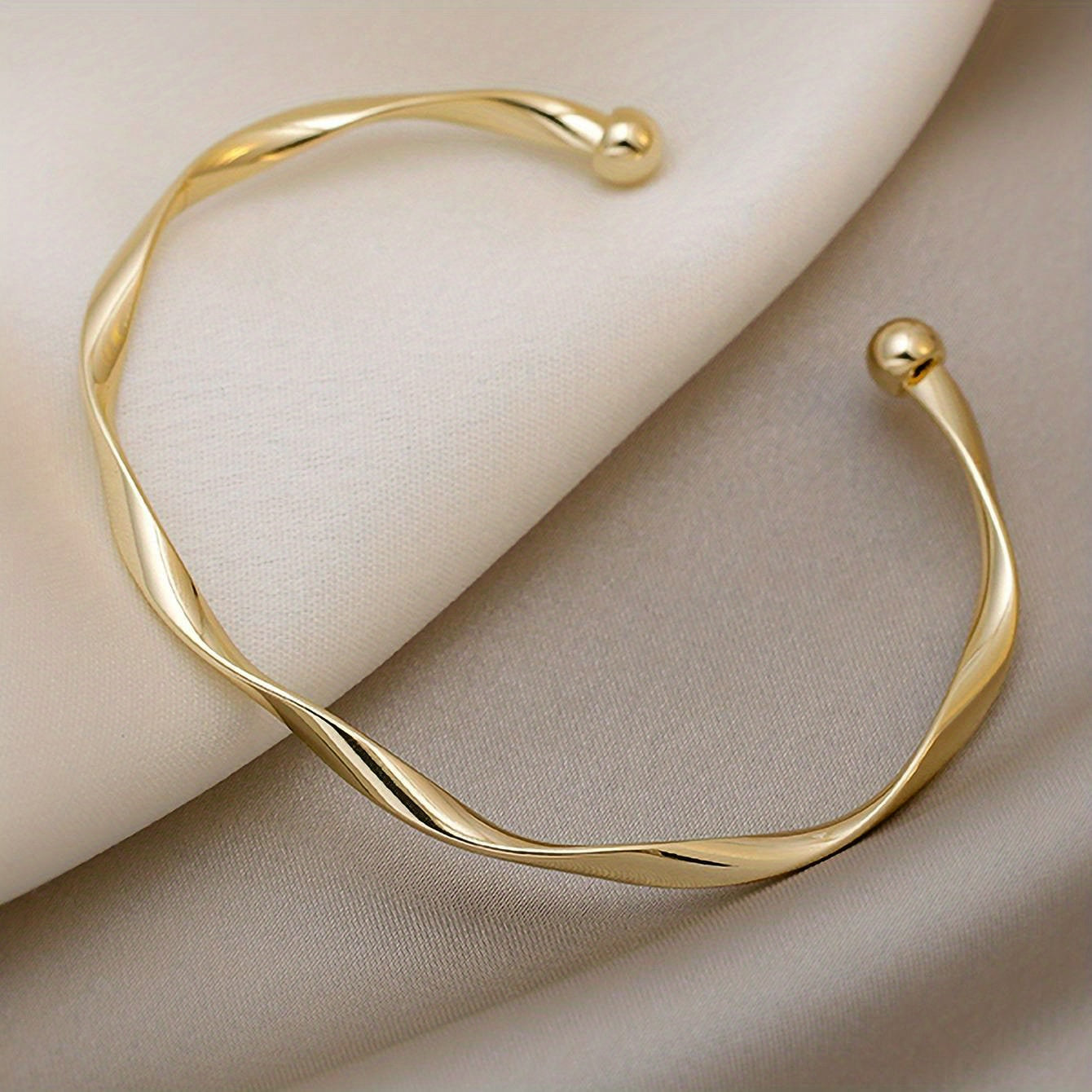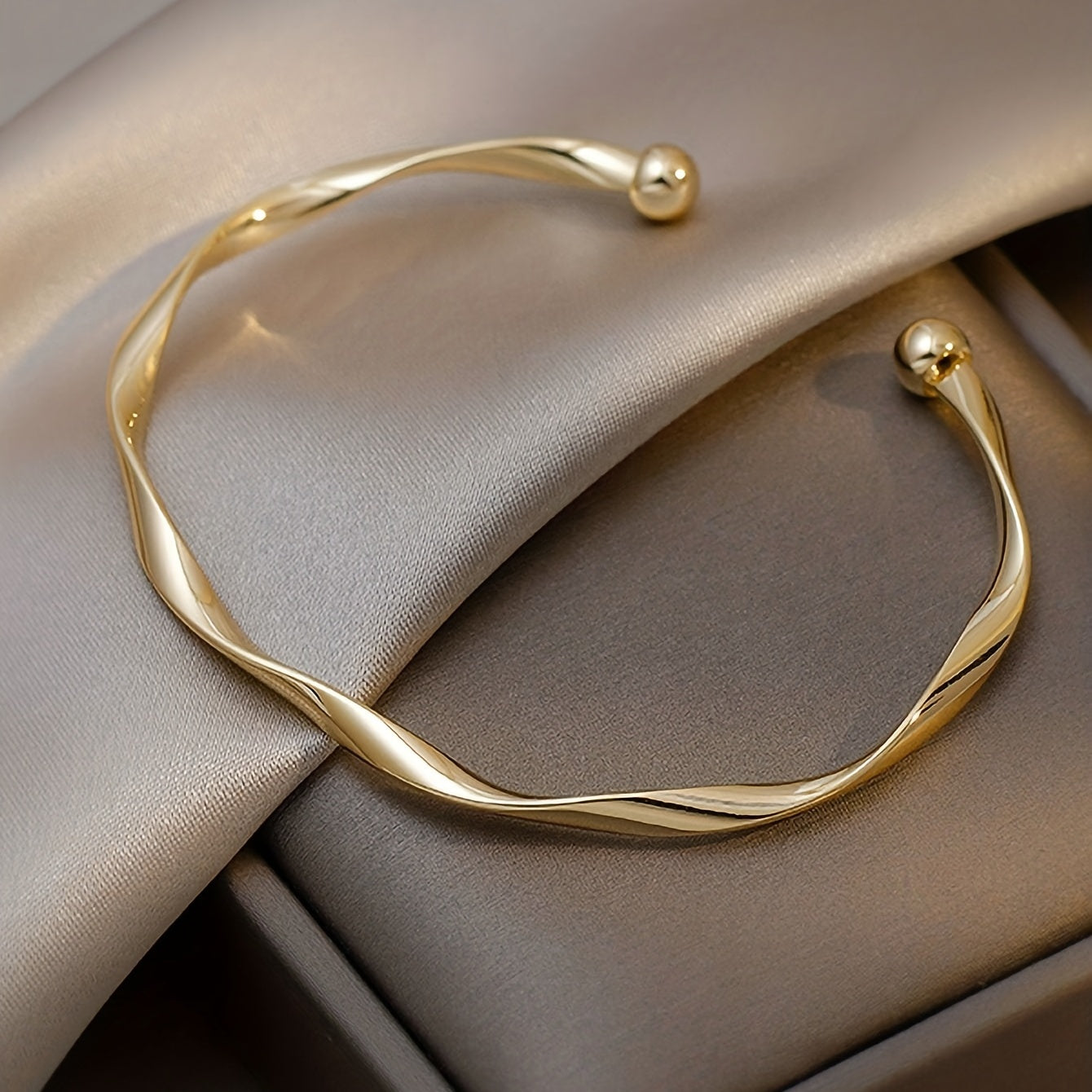 Elegant and modern geometric twisted bangle, perfect for women who love minimalist accessories.