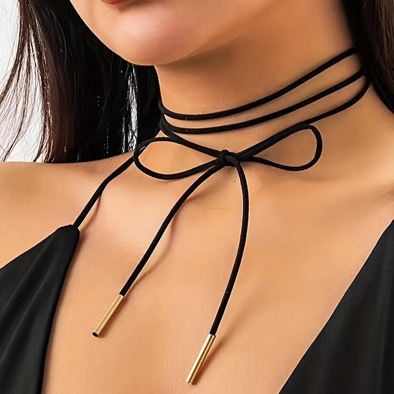 Elegant choker necklace with a geometric velvet thread design and golden accents. Adjustable sliding knot for a perfect fit. Ideal for daily wear or special occasions.