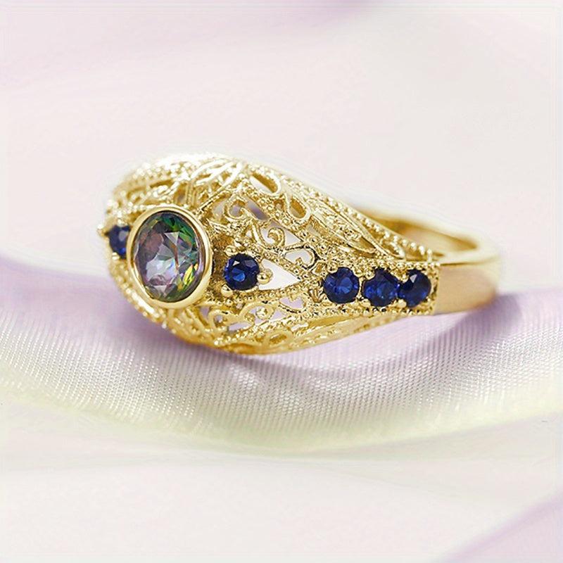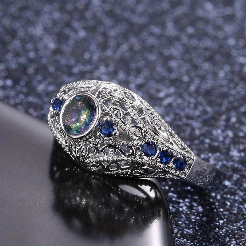 Elegant 925 silver plated ring with geometric pattern and zircon inlay. Perfect for weddings and special occasions.