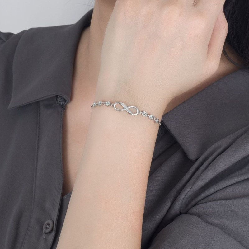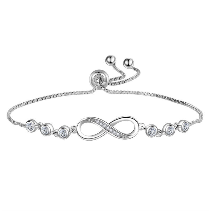 Add a touch of elegance to your outfit with this geometric zirconia chain bracelet. Made of copper, this adjustable hand jewelry is a perfect accessory for women's clothing.