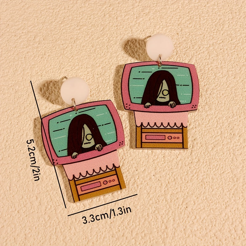 These spooky ghost television horror dangle earrings are perfect for women and girls who love unique accessories. Made from high-quality acrylic, these earrings make a great gift for any horror fan.