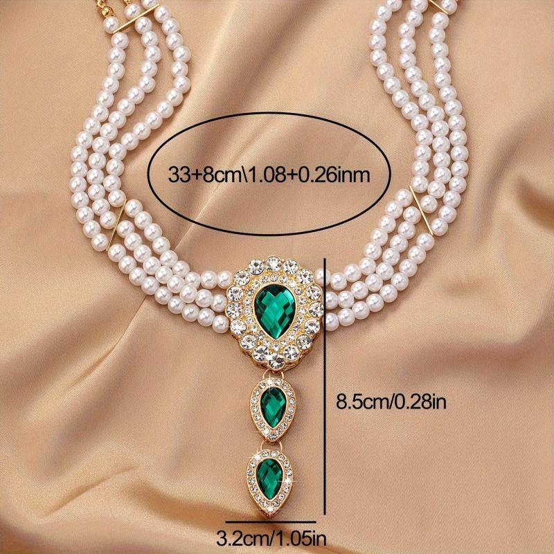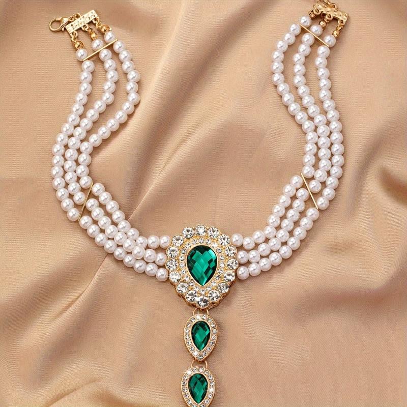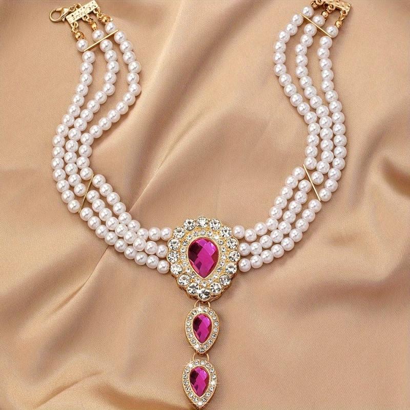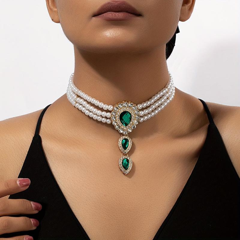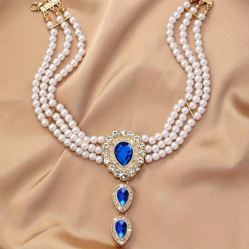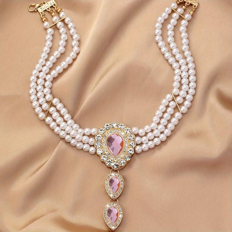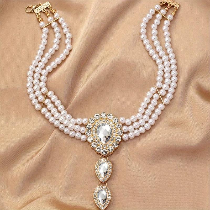 Elevate your style with this stunning collar necklace featuring sparkling rhinestones and lustrous pearls. Perfect for special occasions and party favors.