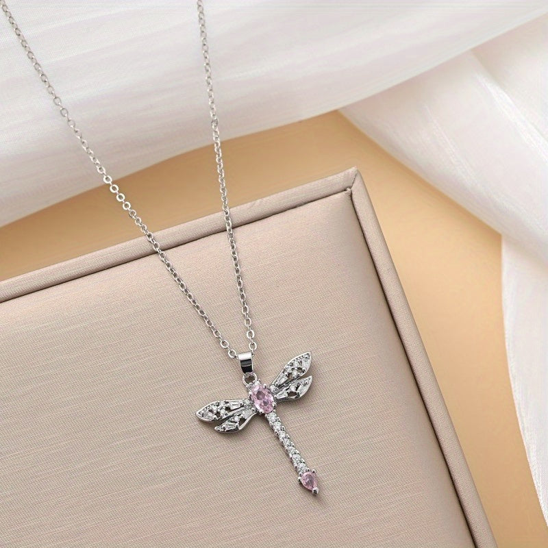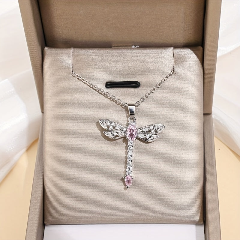 This sparkling pendant necklace features a glittery dragonfly design, making it a perfect accessory for any occasion. It makes a great gift for birthdays, weddings, or anniversaries.