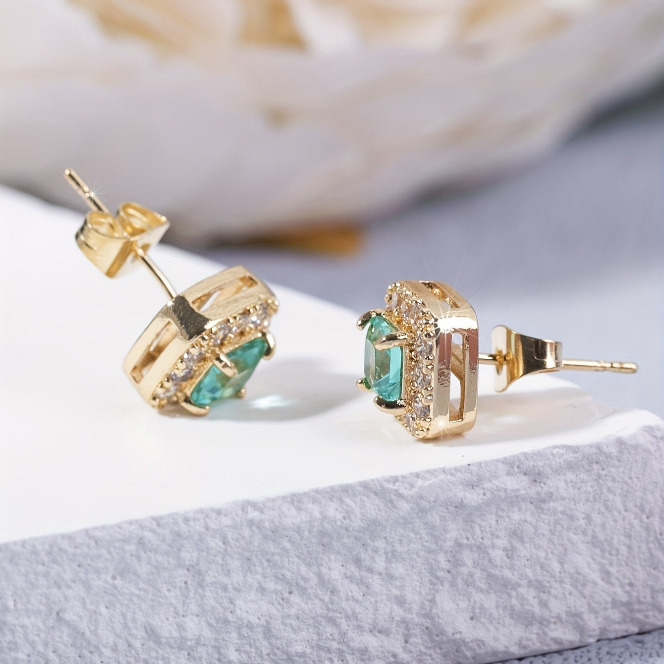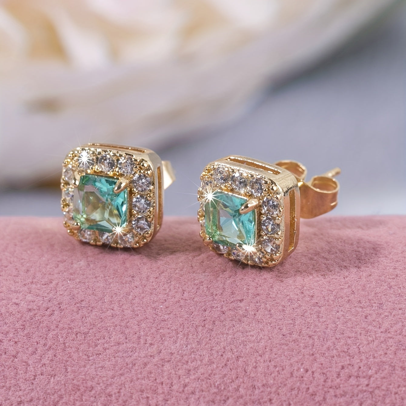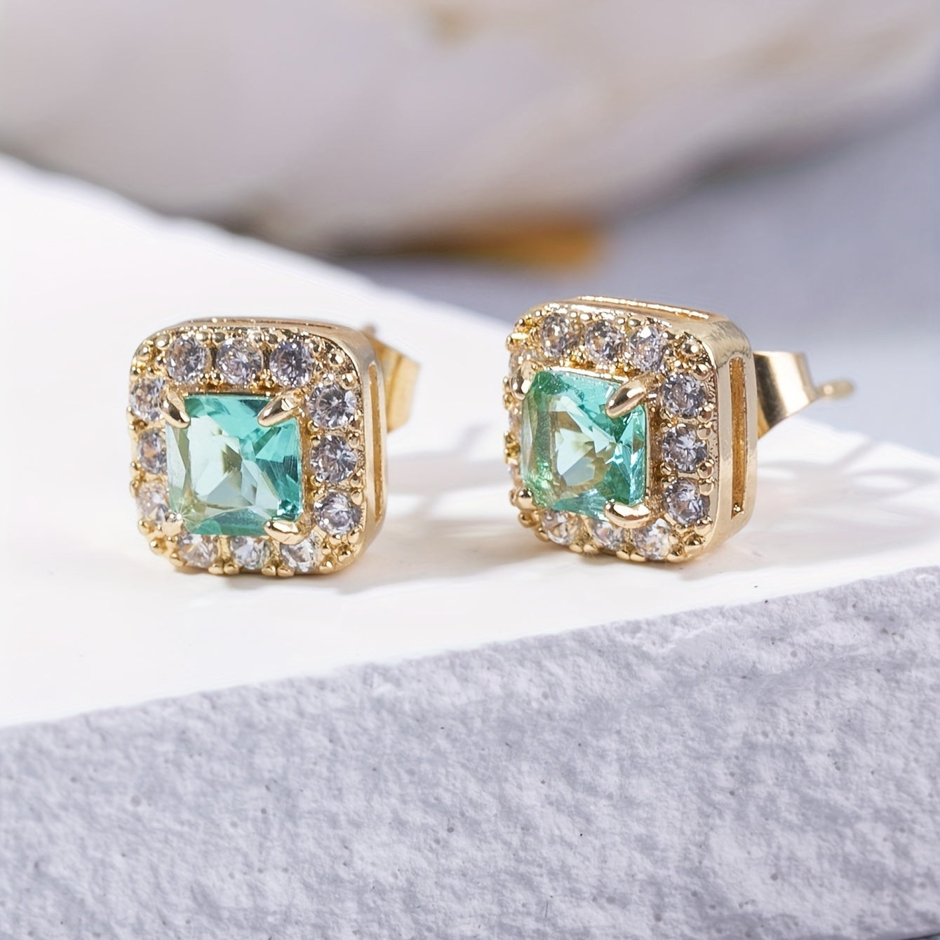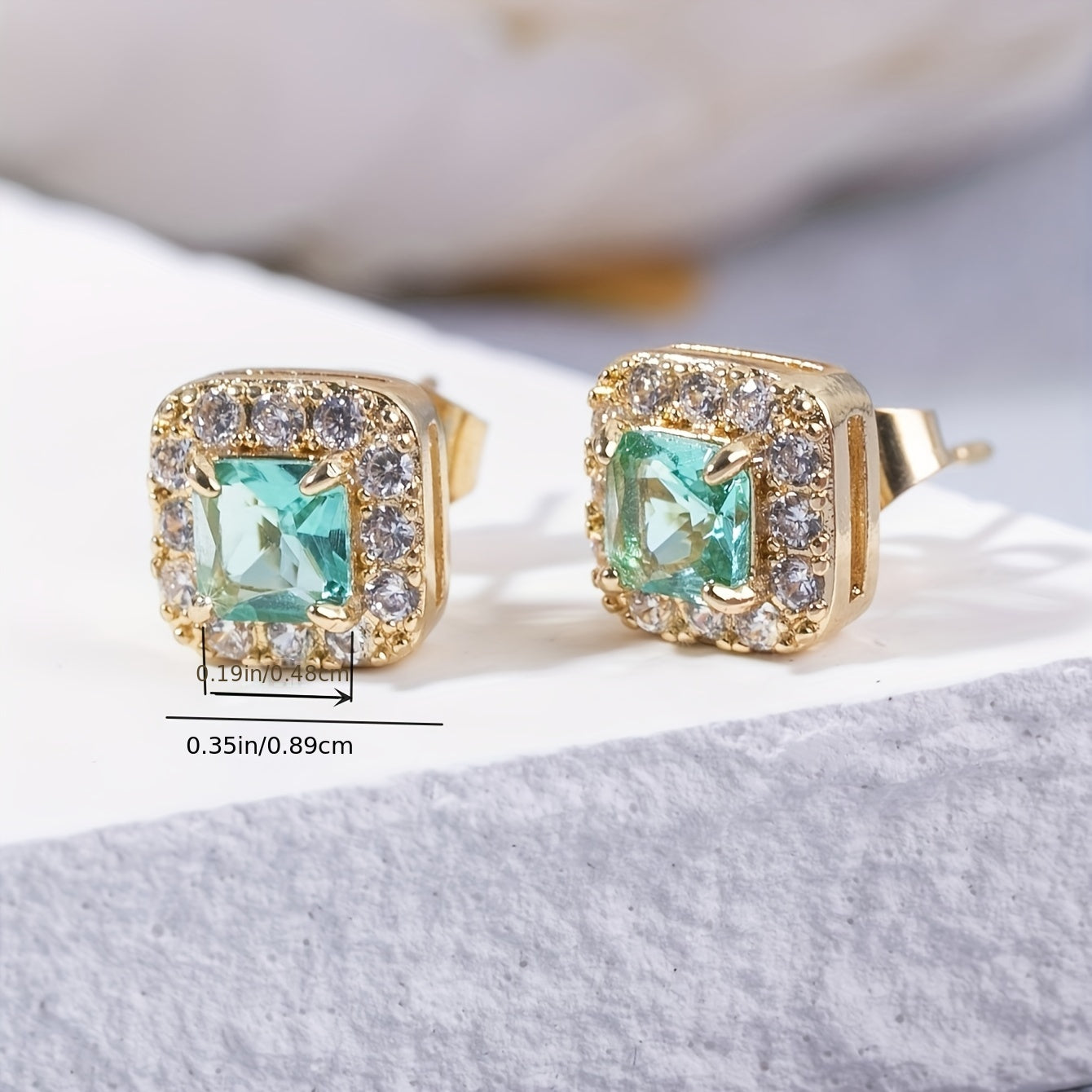 Add a touch of vintage glamour to your look with these stunning green zircon stud earrings. The unique square shape and glittery finish make them a standout accessory for any outfit.