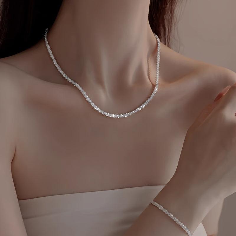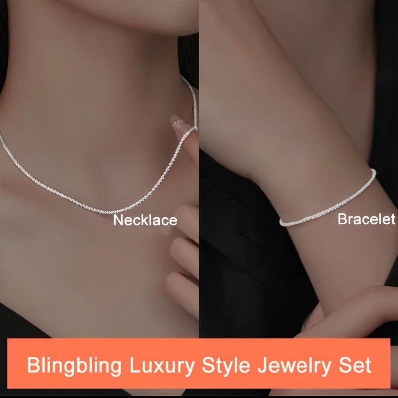 Add a touch of sparkle to your look with this dazzling 2-piece jewelry set. Perfect for weddings, parties, and special occasions, this set features a chain necklace and bracelet adorned with shimmering stones.